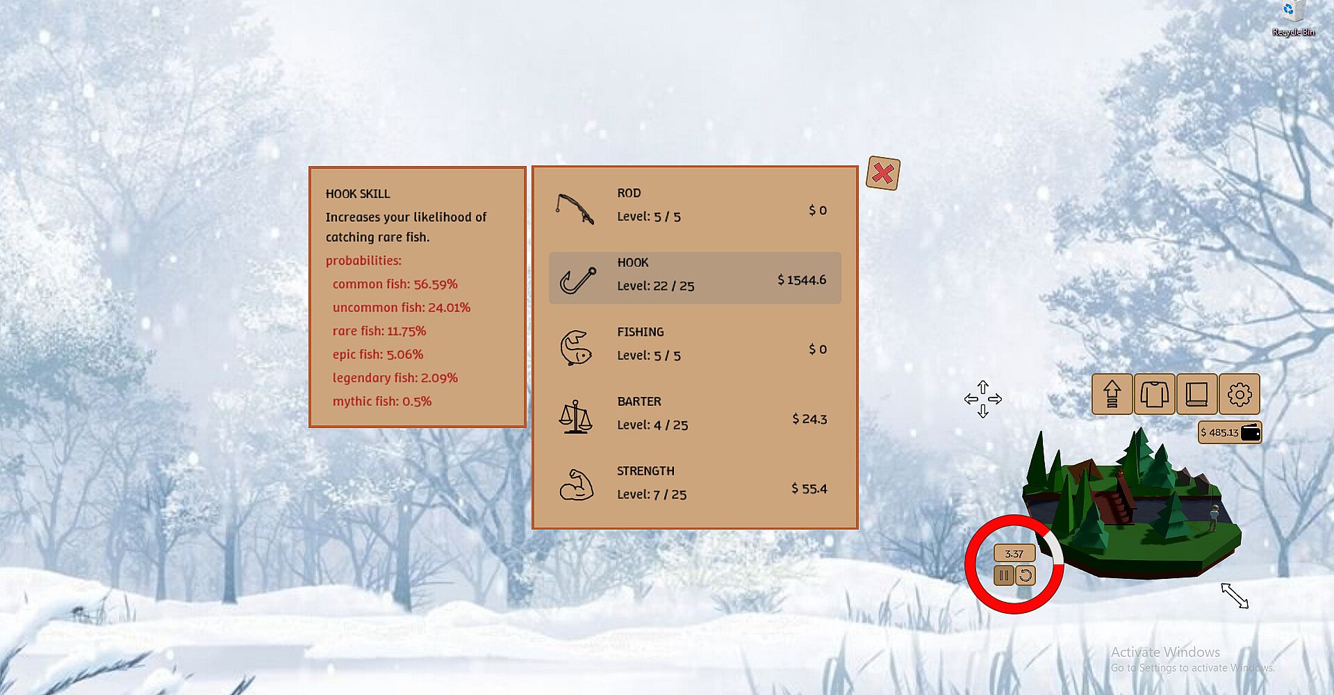 Buy unique cosmetics to customize your fisherman's appearance and environment. Buy hats for Joe and change the color of his skin, shirt, pants, and boots. To spice up your study sessions, there are different themes that represent seasons and locations. In addition to this, you can also customize your shelter.
