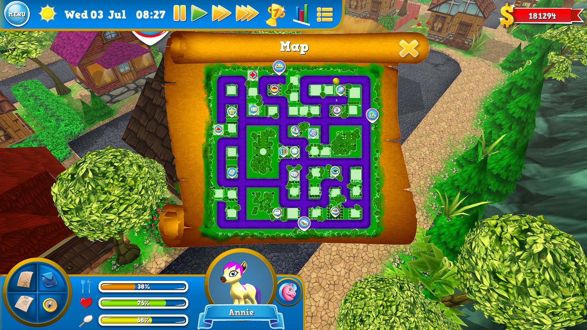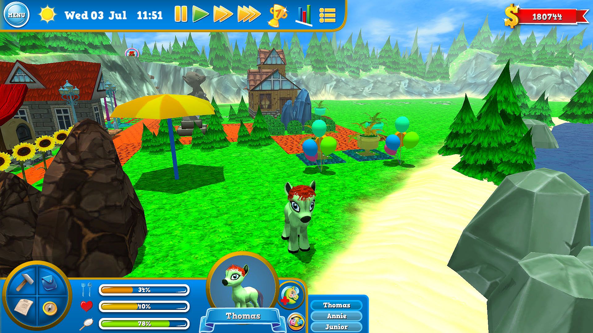 Create your dream pony from scratch in Pony World 3, the third entry in a bestselling indie casual series. Customize looks, clothing, glasses, saddles, and tattoos while shaping its character through education, career choices, and friendships. Explore a bigger Pony Town packed with schools, universities, stylists, beauty salons, theaters, discos, cinemas, skate parks, circuses, beaches, forests, and mountains to socialize, play, work, and relax. Build and expand your pony's farm with improved building mode, new structures, and hundreds of decorations. Plant crops, sell products for money to buy food, gifts, and toys, and boost your status in the neighborhood. Enjoy five scenarios, free play mode, five new mini-game competitions, enhanced 3D graphics with free look, and five huge locations plus three farm spots-all tailored for casual players who love creative customization and relaxed exploration on PC.