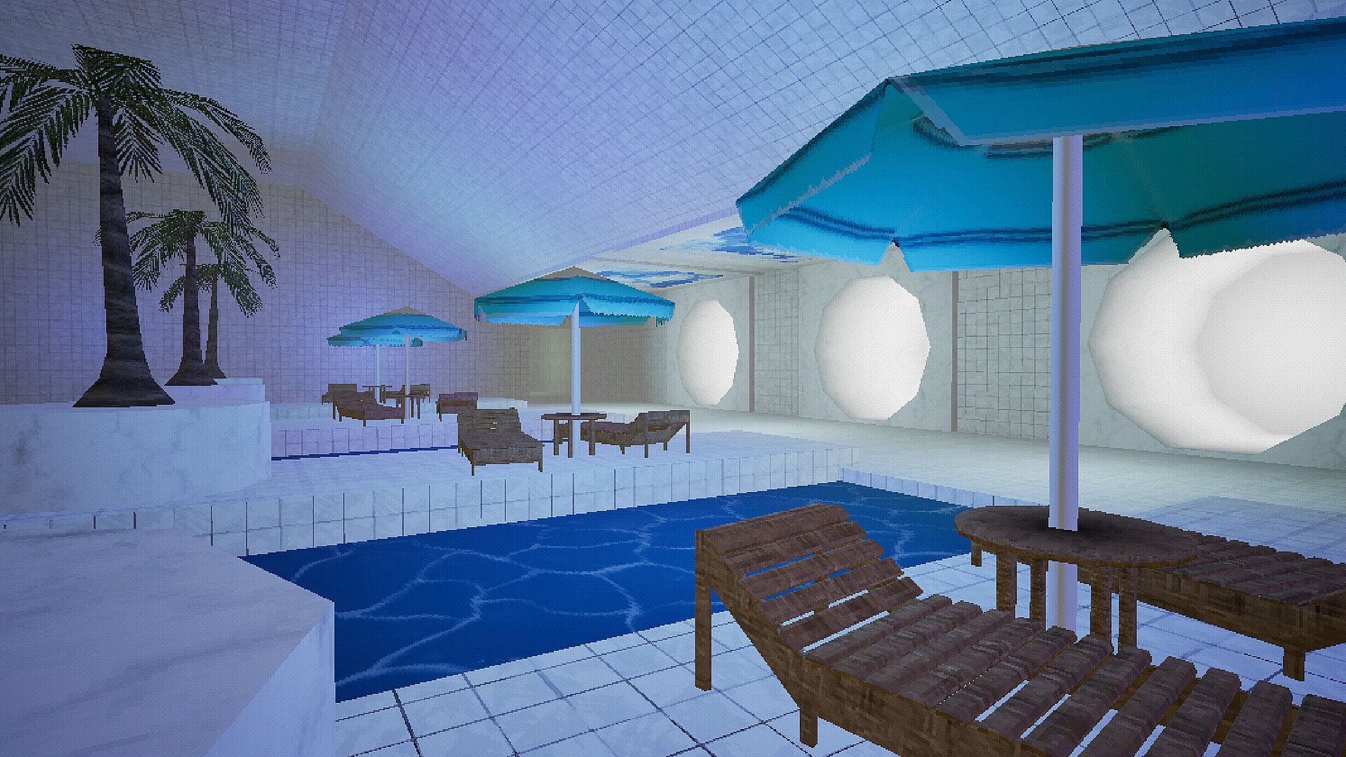 Poolscape focuses on immersing players in the nostalgia of classic PSX gameplay through authentic ’90s-styled visuals and quirks such as color dithering, vertex snapping, and distance culling rather than aiming for ultra-realism like most liminal space games on the market. Explore many unique Poolrooms levels, each offering its own atmospheric sound design and map layout, blending isolated, euphoric exploration with subtle horror elements that are heightened by the visual and technical limitations of original PS1-era hardware.
