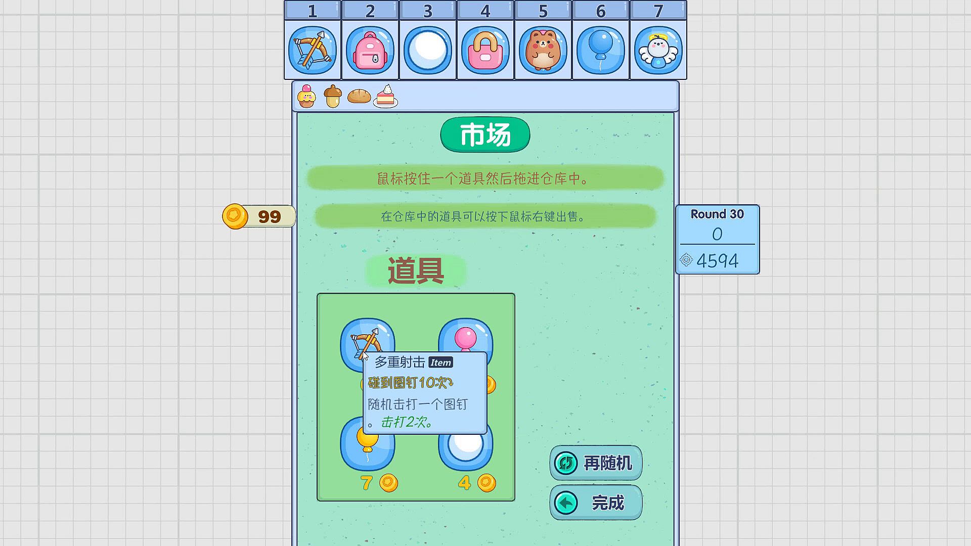 In this Plinko-style roguelike, you'll send your ball through a board of pegs to rack up points. Harness the magical powers of a variety of unique items to boost your score output. Use these items to craft diverse and creative strategies, pushing your scores beyond limits. Experience the thrill of victory as the different components of the game work together to maximize your points!