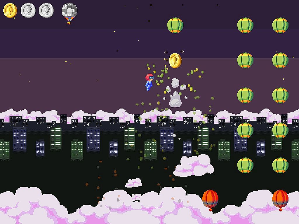 POPixel is a game made with pixelart. It's the perfect mix between casual and adventure styles. You control an acrobat bullet-man that blows up balloons jumping on them, but it's not that simple: each balloon has an unique behavior.
