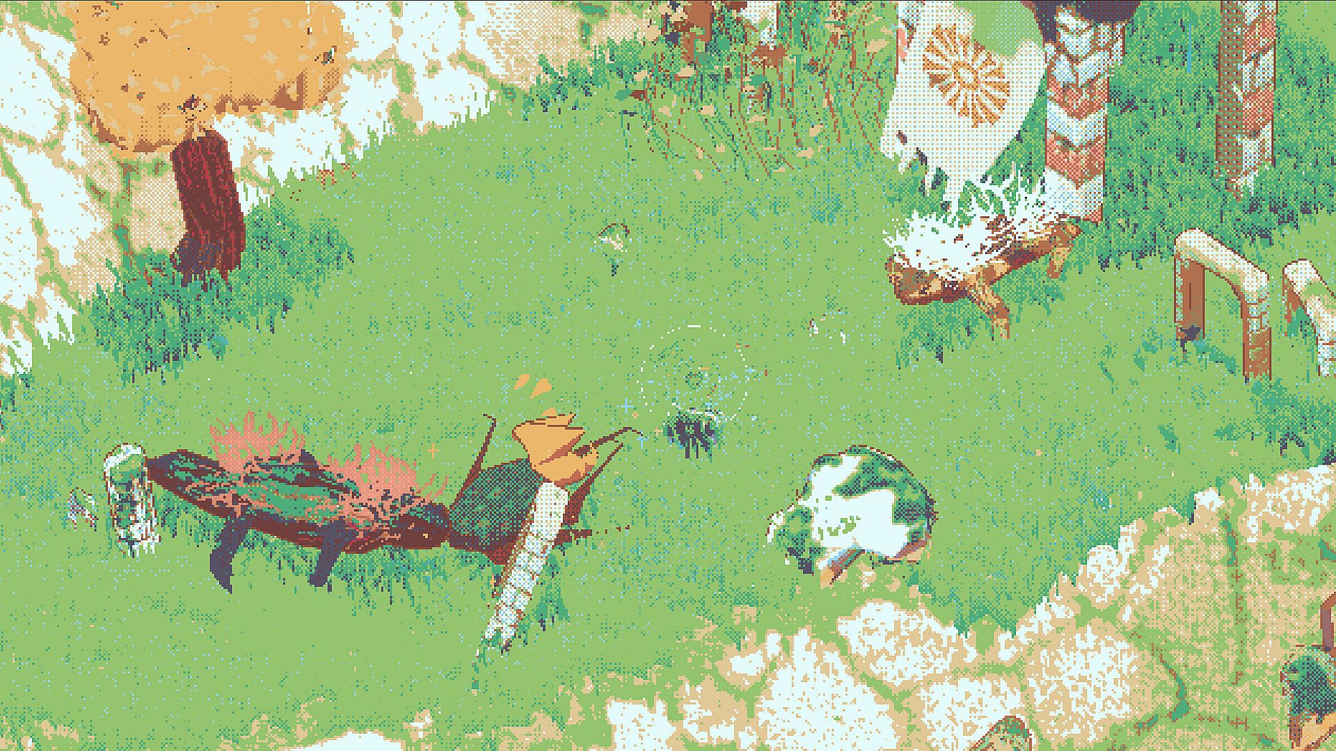 Hand drawn pixel-art and low-poly style.
