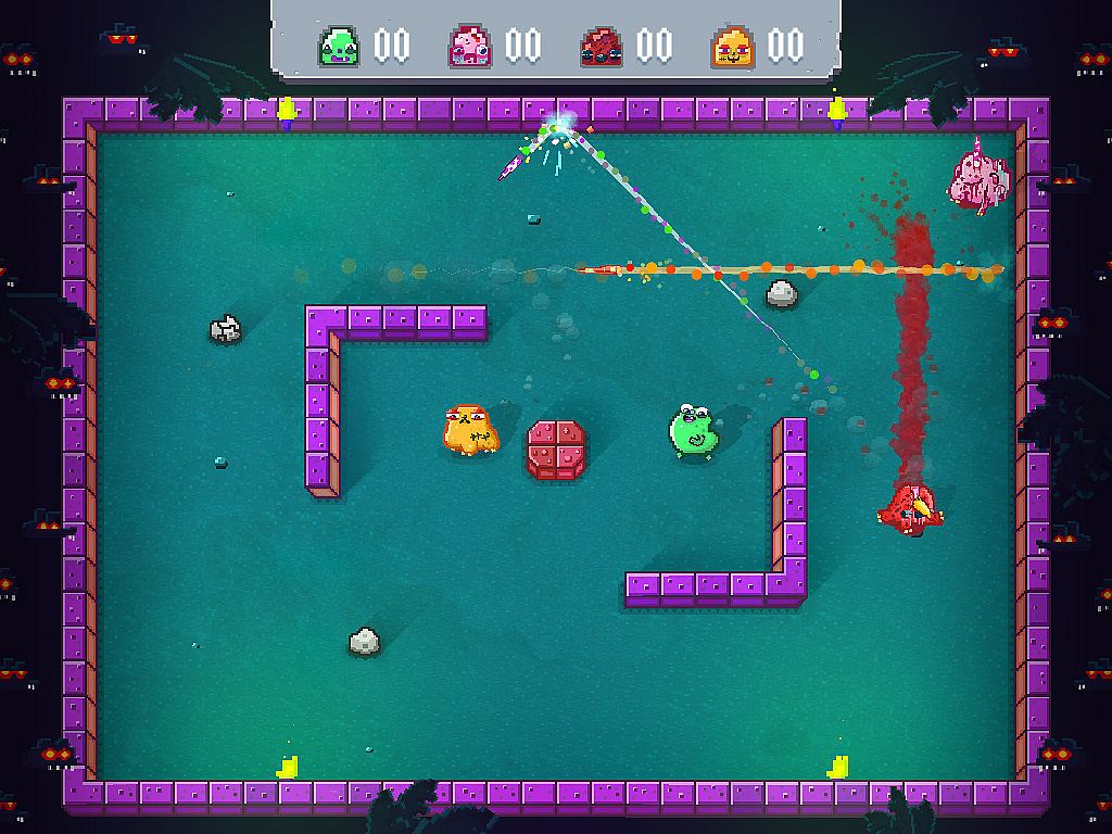 The concept of the game is simple: You are a majestic and terribly violent porcunipine. You have one quill which you can shoot at your opponents. Once you shoot, you have to go and pick up that quill before you can shoot again. Your quill rebounds from walls and obstacles, and can kill you just as easily as it can kill your enemies.