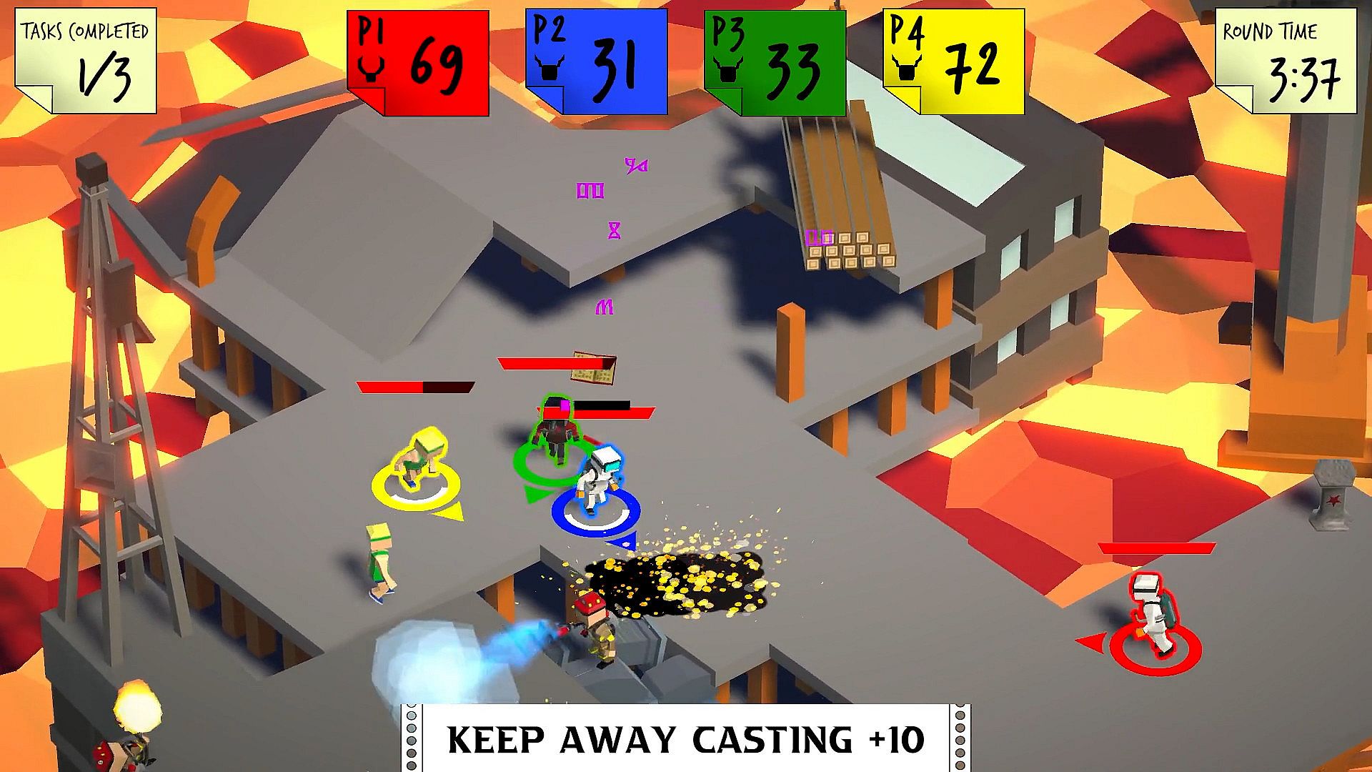 Compete as demonic interns at the infamous HELLC in this action-packed indie party game for 2-4 players. Possess hordes of mortals anytime to snag special abilities and tackle the boss's tasks. Switch between four unique demonic classes, each with distinct powers in demon form and when possessing mortals, to outmaneuver rivals. Battle over friendship-ruining tasks that demand cunning use of possessions to block opponents and claim the top spot. Local multiplayer keeps the chaos immediate and intense on PC. Perfect for groups craving competitive, power-grabbing mayhem.