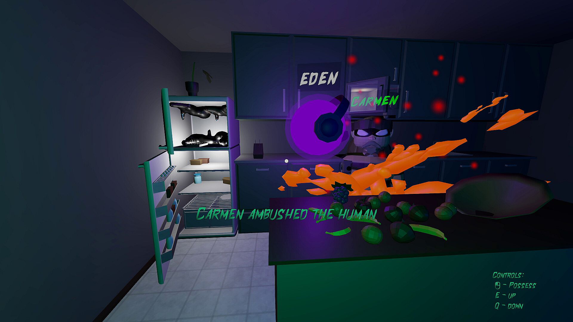In this online, asymmetric, mess-with-your-friends party game, one player controls a Burglar trapped in a house by a Kitsune and forced to do random tasks while 2-8 other players play as invisible Ghosts with the ability to possess household objects and use them to ambush the Burglar, take control of the body, and attempt to accomplish their own tasks. The first one to finish their tasks and escape the house with the body wins the round!