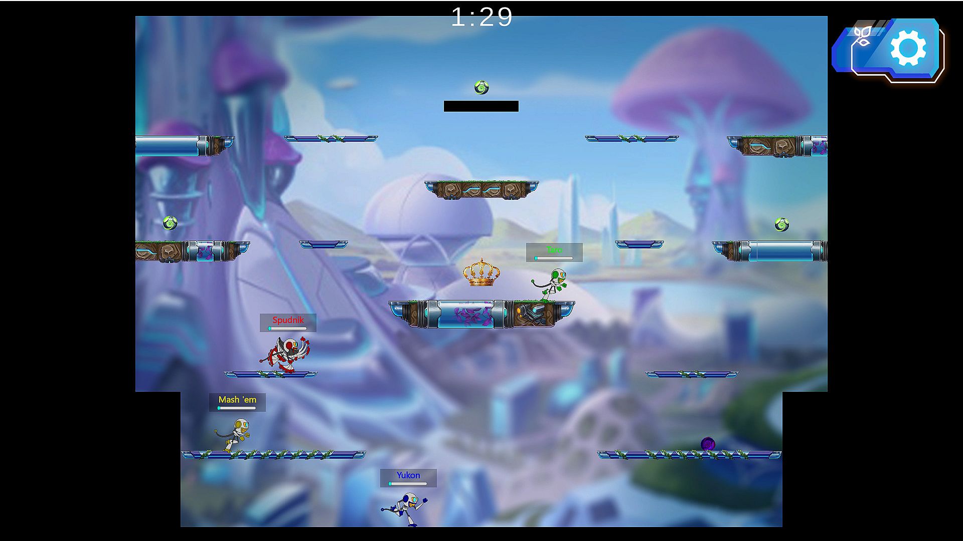 Potato Party: The Potatomancer is an in-development competitive party platformer in which potatoes in mech suits compete in an array of head-to-head arena challenges to crown a victor, who can turn the laws of nature against their opponents.