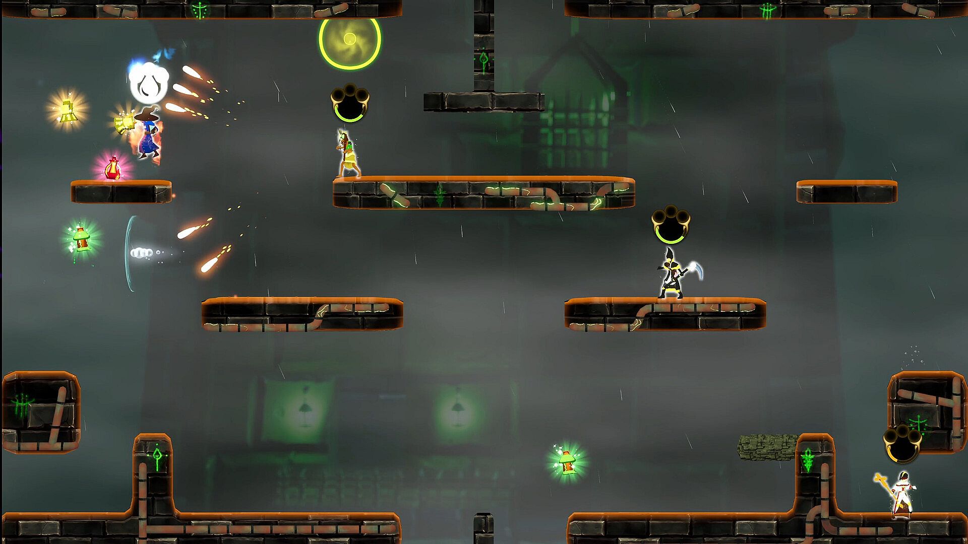 A fascinating couch-multiplayer versus game where you embody a wizard mixing, sipping and unleashing magical potions to blast your opponents with a mesmerizing array of spells. Only the craftiest, luckiest, and most skilled wizard will emerge victorious!