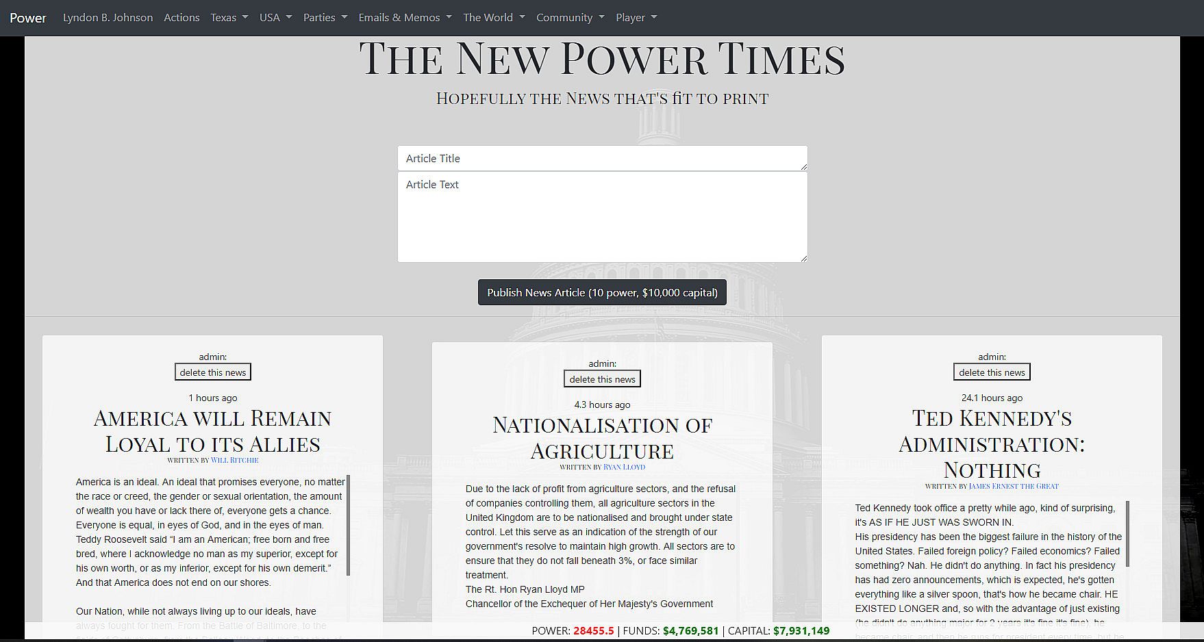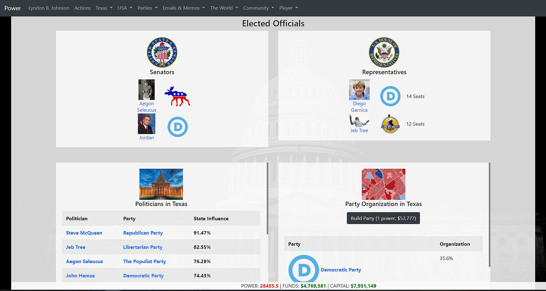 Power is a massively multiplayer political simulation game, and allows you to compete with hundreds of other players in a detailed world.