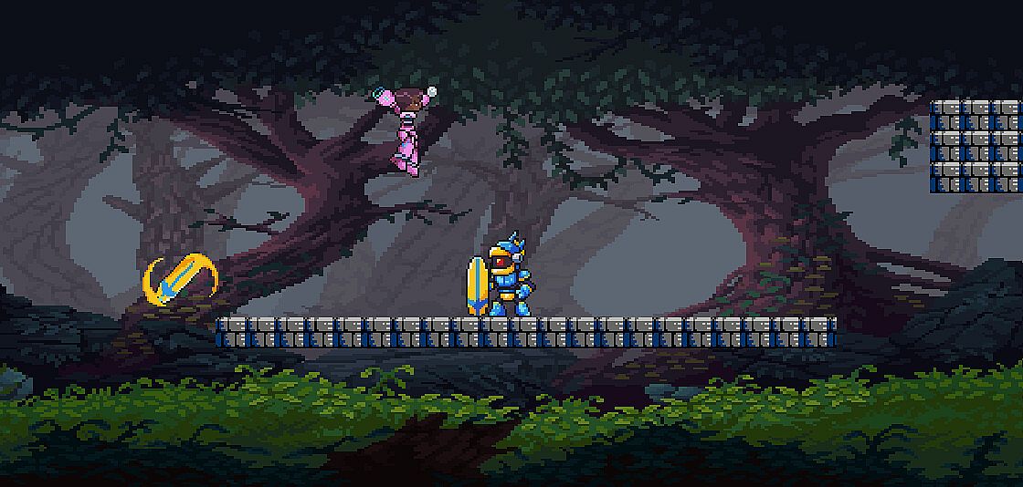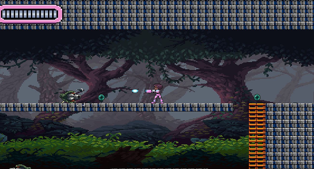 One of the many features in Power Chips is the crisp movement, specifically dashing, which gives players a burst of forward momentum. This not only speeds up movement but also opens up new platforming possibilities and combat strategies, allowing for quicker evasion and better control when lining up attacks. Additionally, wall jumping lets the player cling to and scale vertical surfaces, adding depth to platforming and enabling players to scale walls to avoid attacks.