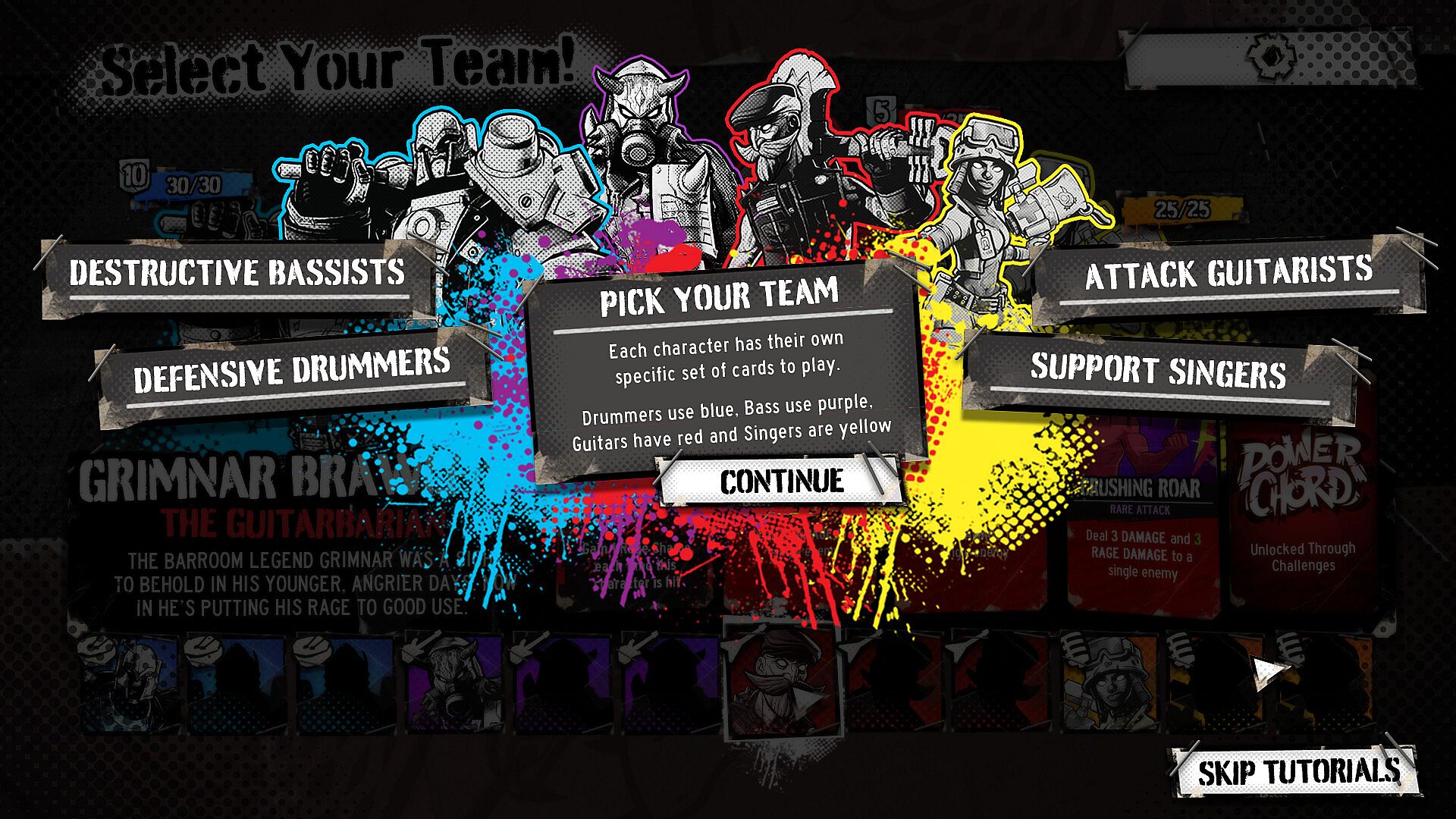 Choose from a diverse cast of kick-ass characters to assemble your band, with each member having their own unique set of cards and playstyles. Combo your different band members’ cards to unleash devastating attacks and shred your opponents.
