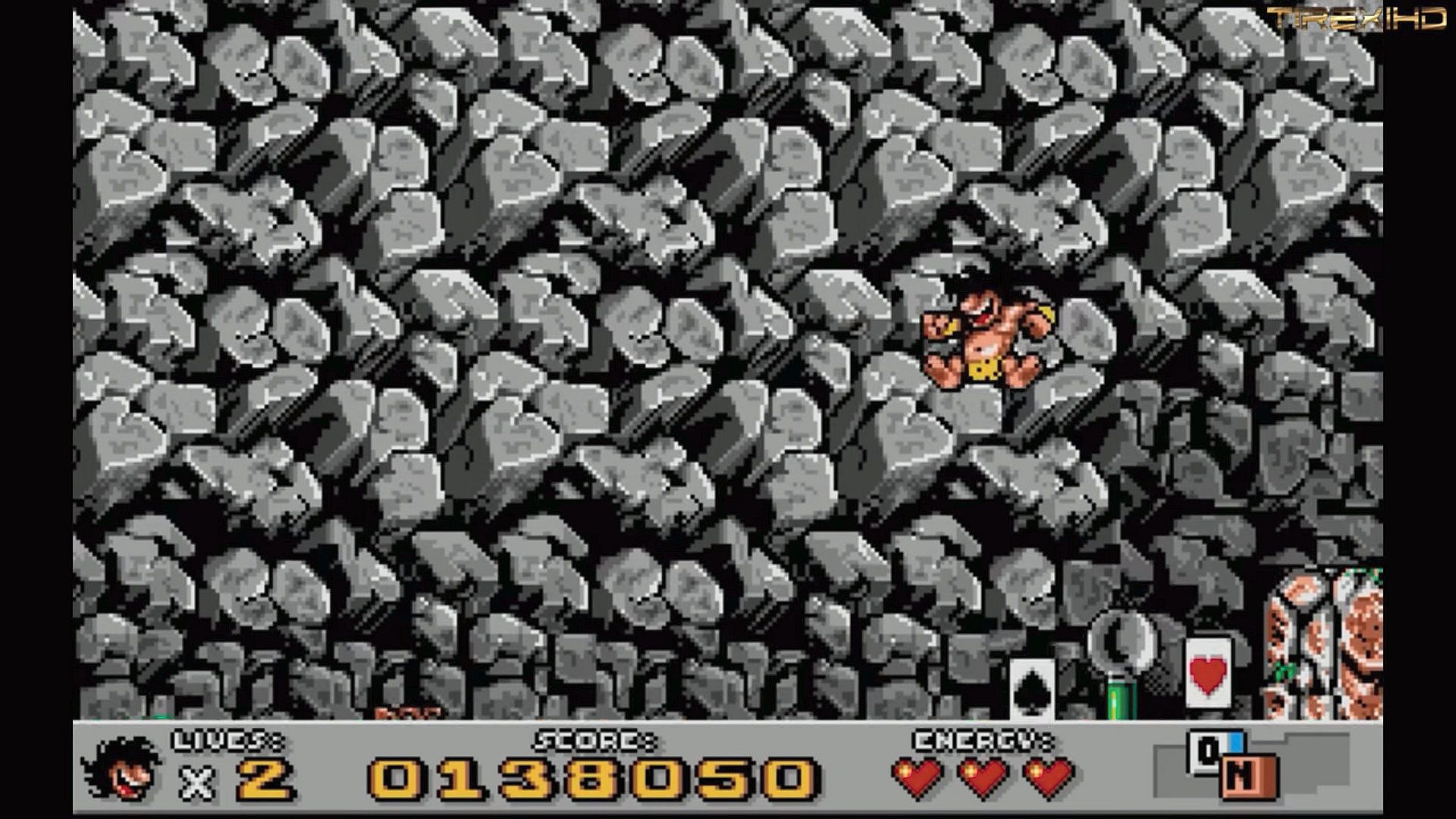 The game is a classic platform game where the player walks and jumps his/her way through the levels and whacks enemies in the head with a club. Points can be collected by both whacking enemies and collecting items (including food, diamonds, video games, etc.). The levels contain hidden food items which can be discovered by hitting the right spots with the club.
