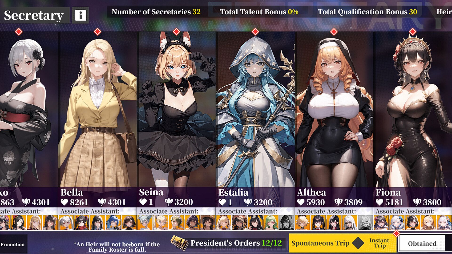 The richer you get, the more fun you have. Spoil your secretaries with luxury gifts to boost their affection. Watch your revenue (and their affection) skyrocket with every new level!