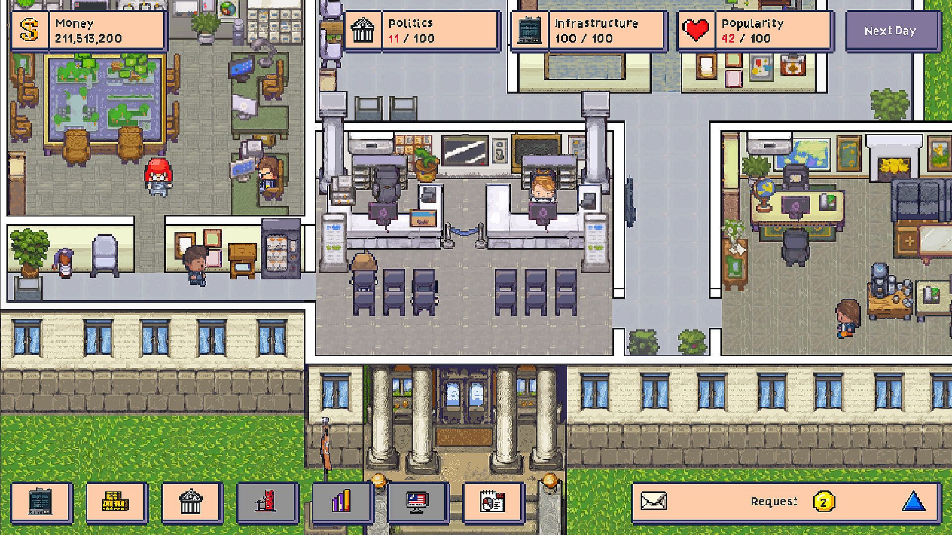Presidential Rise is a political strategy and management sim where you lead a rising nation as its newly elected president. Balance economic growth, public satisfaction, and political stability while facing mounting pressure from a powerful billionaire antagonist.