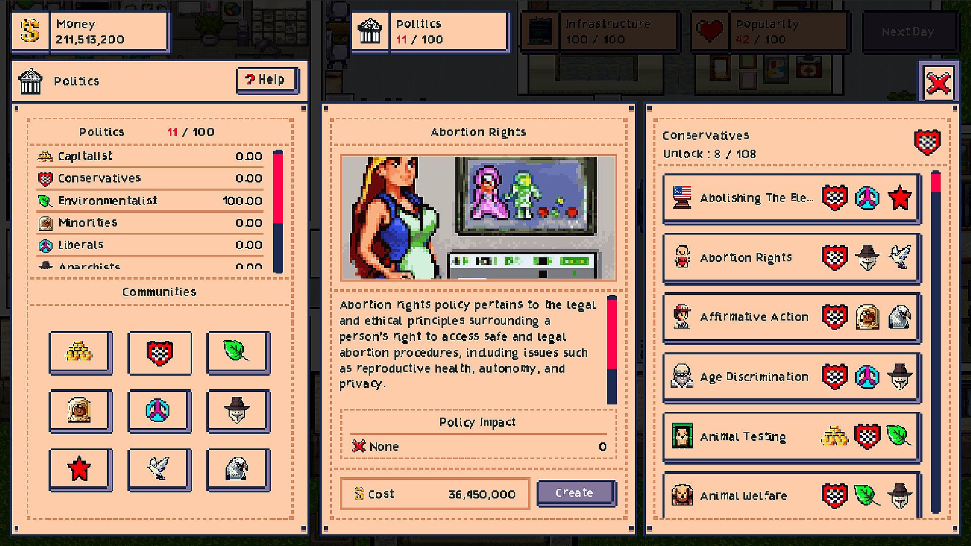 Popularity & Power Balance – Keep different community groups satisfied—or risk losing control.
