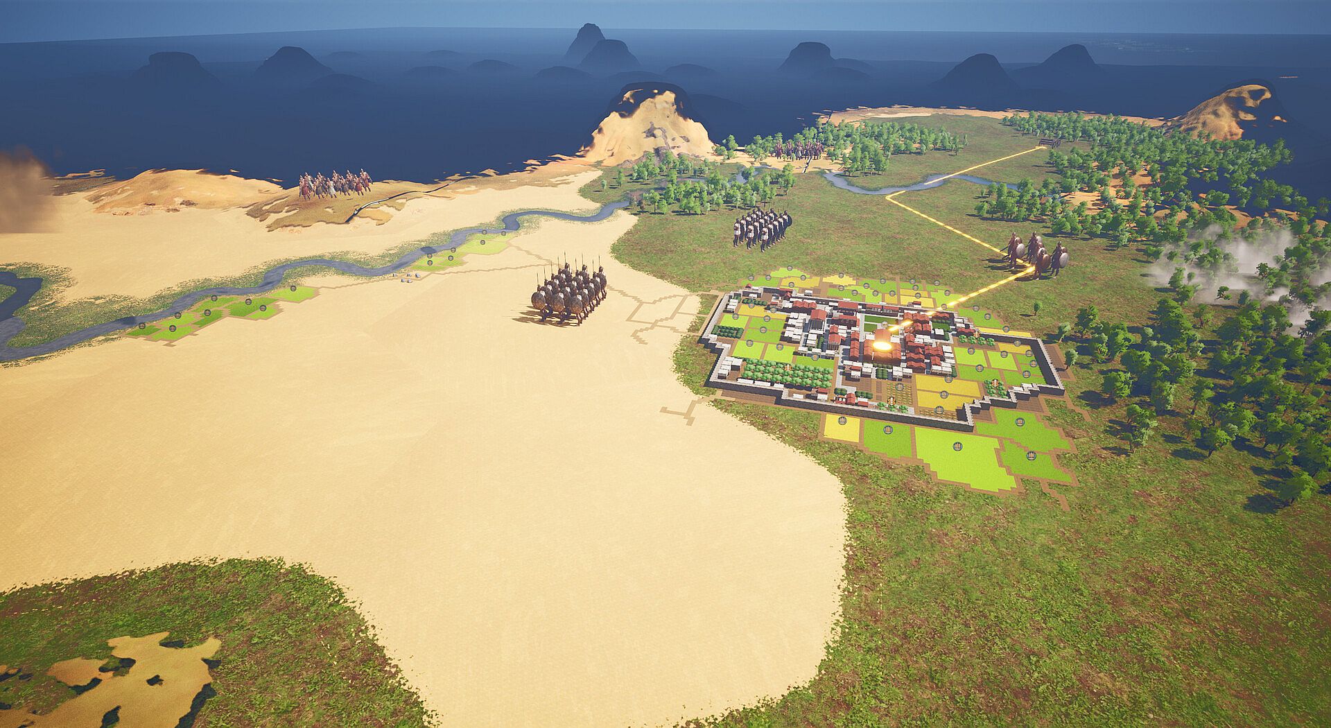 Traversing vast landscapes, from sprawling deserts to lush forests, each brimming with life and opportunities. The game's world should feel like a god-like mode of living, breathing world, where every hex contributes to an immersive sense of grandeur and depth from the ground.