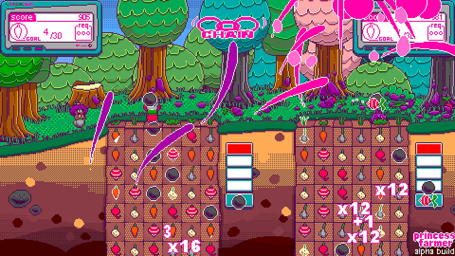 Princess Farmer was just an ordinary farmer when one day she woke up under the Gaia Tree. Now through the magic of Mother Gaia, she can hoist up whole rows of veggies with ease to make matches and smash obstacles by herself, in co-op, or even with an AI companion! Something mysterious is happening in the woods and it's your job to puzzle your way to uncover it! You'll learn about the world around you as you talk and build relationships with the loveable characters including: Mother Gaia, Garlic, Shoppe Keeper Rowan, and even BunBot!