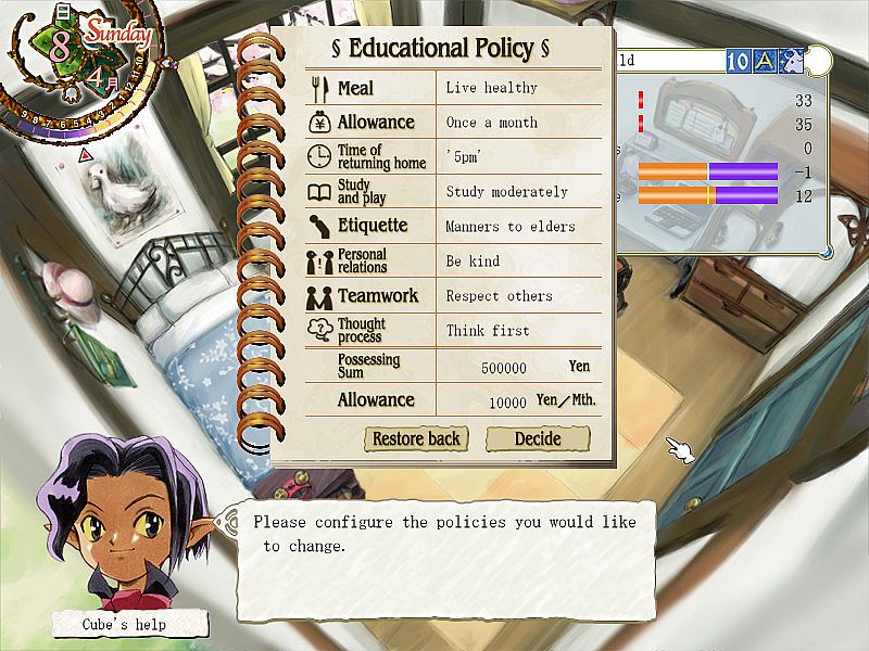 She will act in accordance with the 「Education Policy」 that you can set out every month.