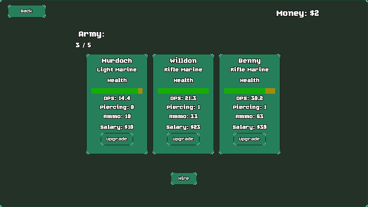 Train your soldiers and purchase upgrades across various missions.