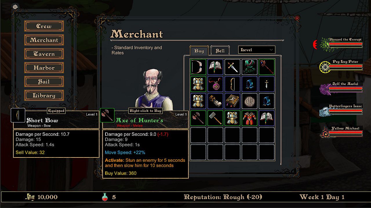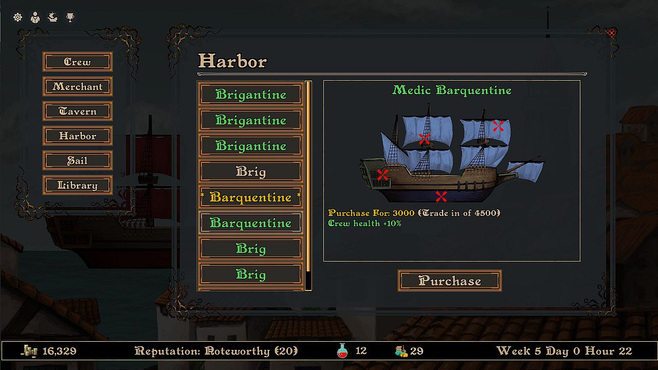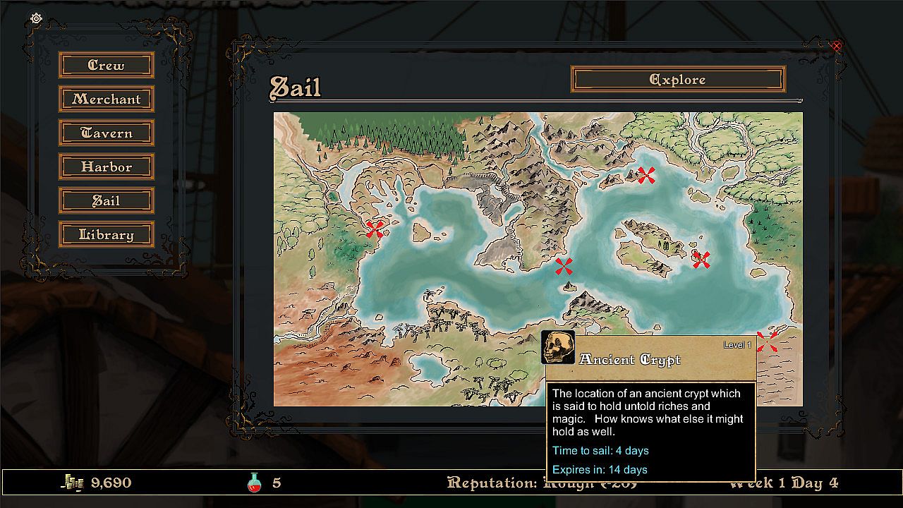 Privateers is a roguelite set in a fantasy nautical world. Players are set free into an archipelago where they can become a heroic navy captain or an evil pirate overlord depending on the choices that they make. They will encounter a rich and diverse set of fantasy factions each with their own backstory and unique style of events.