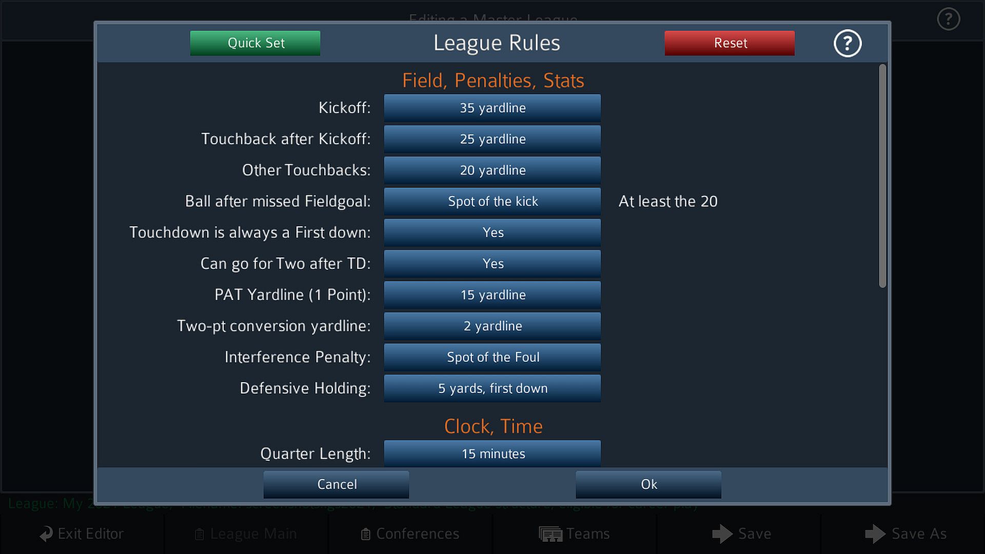 Customize every league's sounds, images, and rules. Quick Set from rules in the 1940s to today, or go with three downs for a Canadian feel! Play any song as your background music!