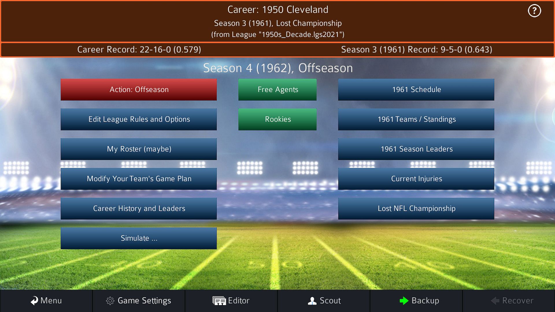 Easily create the actual 1976 league and season schedule, for example, and play a season or even a career! And now, you can change the number of wildcard teams! Each season, you can load the actual schedules (or scramble teams) and choose the playoff formats!