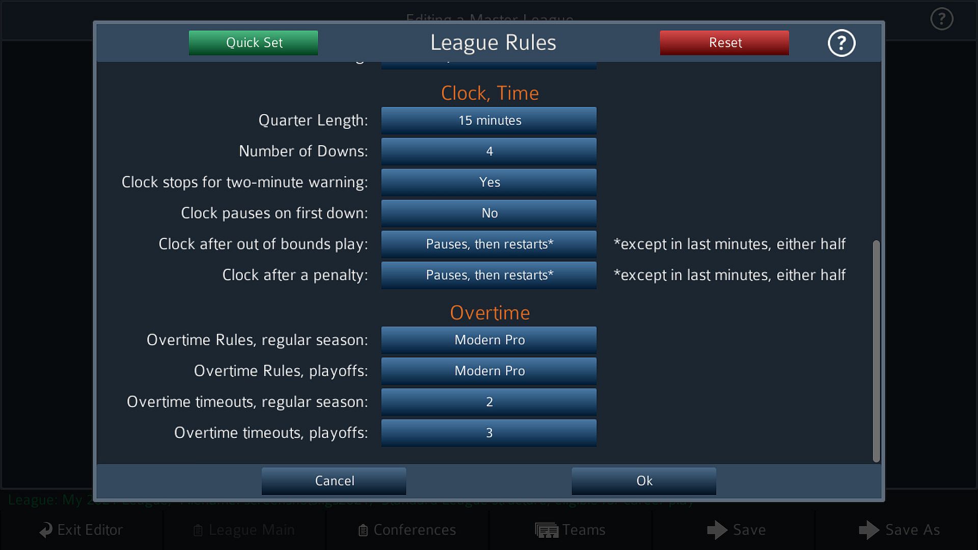 PSF 2021 is so full of features that you'll still be discovering them for months! Check out the Scenario Editor in Quick Play, where you can set a game's teams, rules, quarter, time, number of timeouts, EVERYTHING, and then either sit back and watch or take one of the teams as a coach!