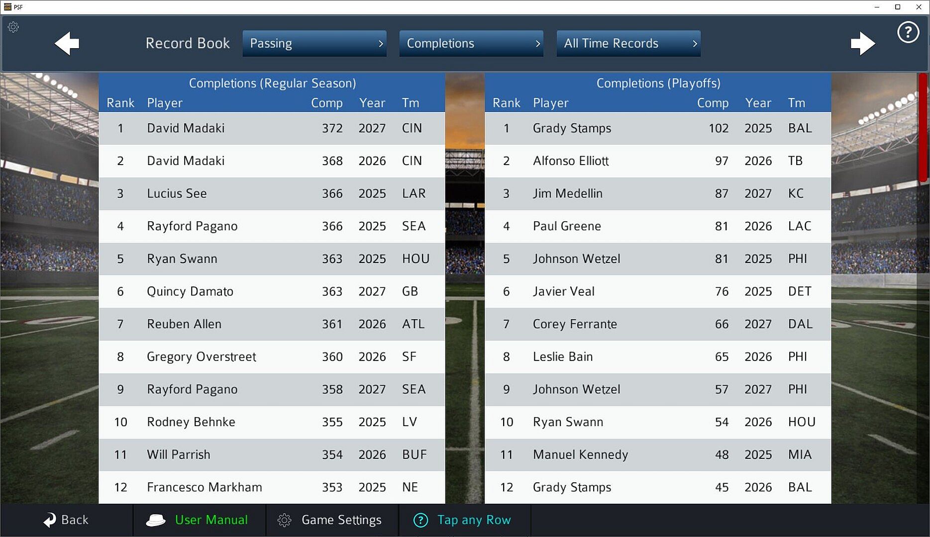 The combination of career records, player season logs, and the new ability to watch any play of any game bring hundreds of hours of fun!