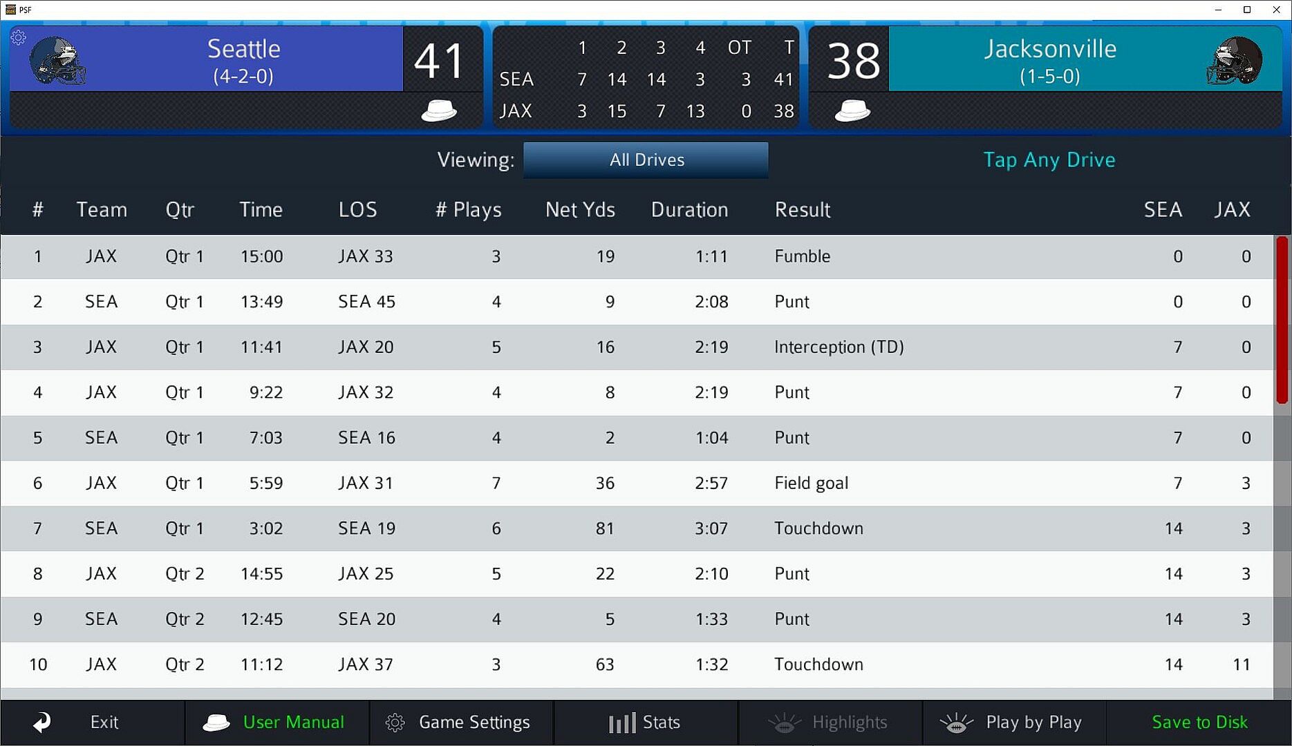 • Highlights mode is better than ever!  You can still step through key highlights, but now you can configure the highlights!  Even better, you can step through drives and plays!  You can even start at the beginning (or start in any drive) and watch as much of the game as you want!