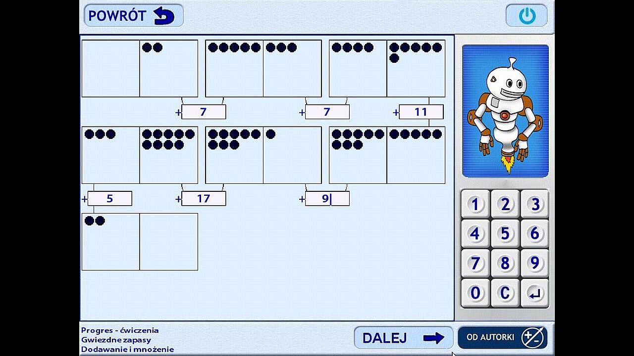 Sposób realizacji aplikacji (interfejs, komunikacja, udzielanie odpowiedzi, wyniki) dostosowane są też do potrzeb i wymagań dzieci. Wszystkie zadania i ćwiczenia są szczegółowo opisane i omówione przez występujące w aplikacji postacie. W każdym momencie realizacji zadań użytkownik widzi w jakiej grupie ćwiczeń się znajduje.