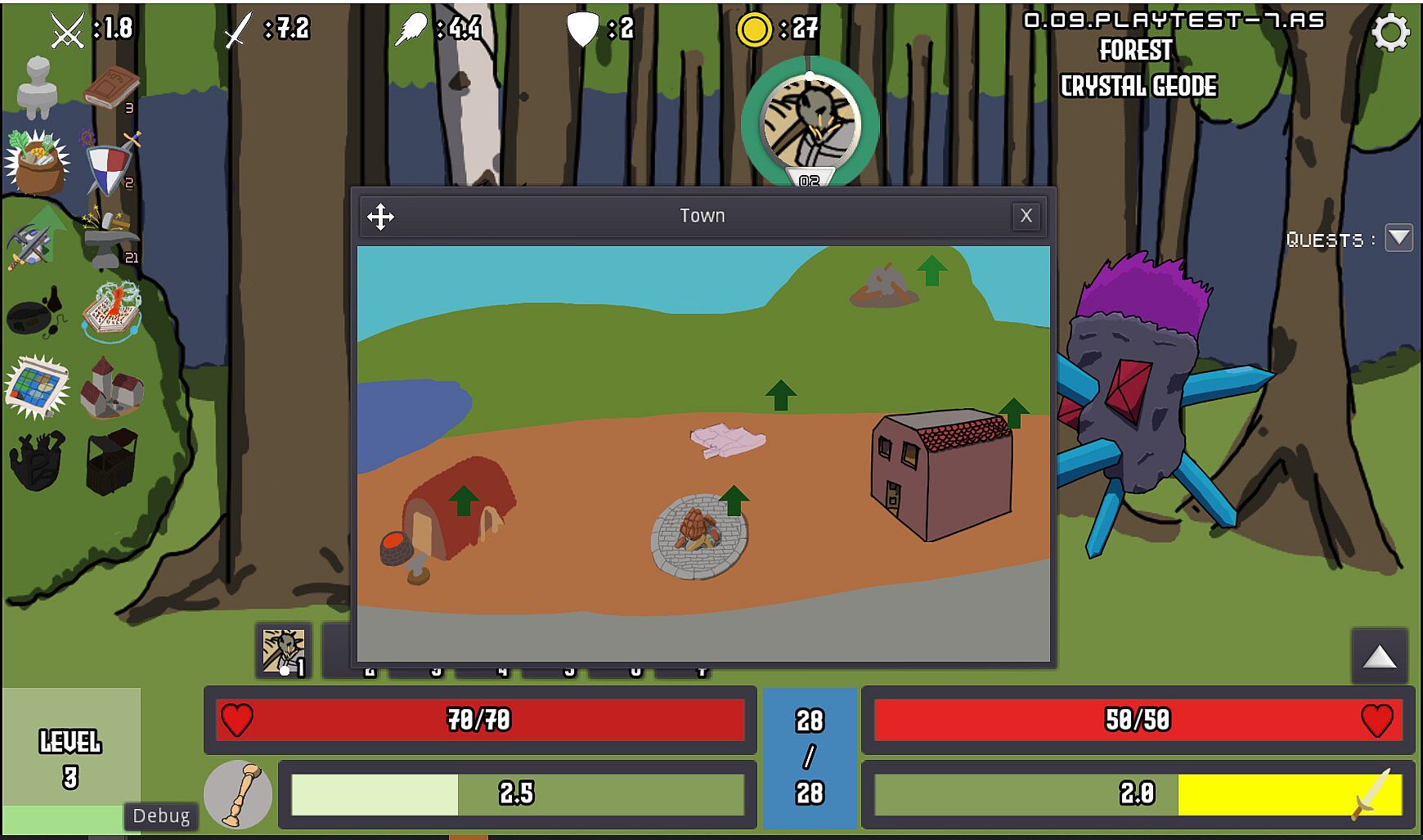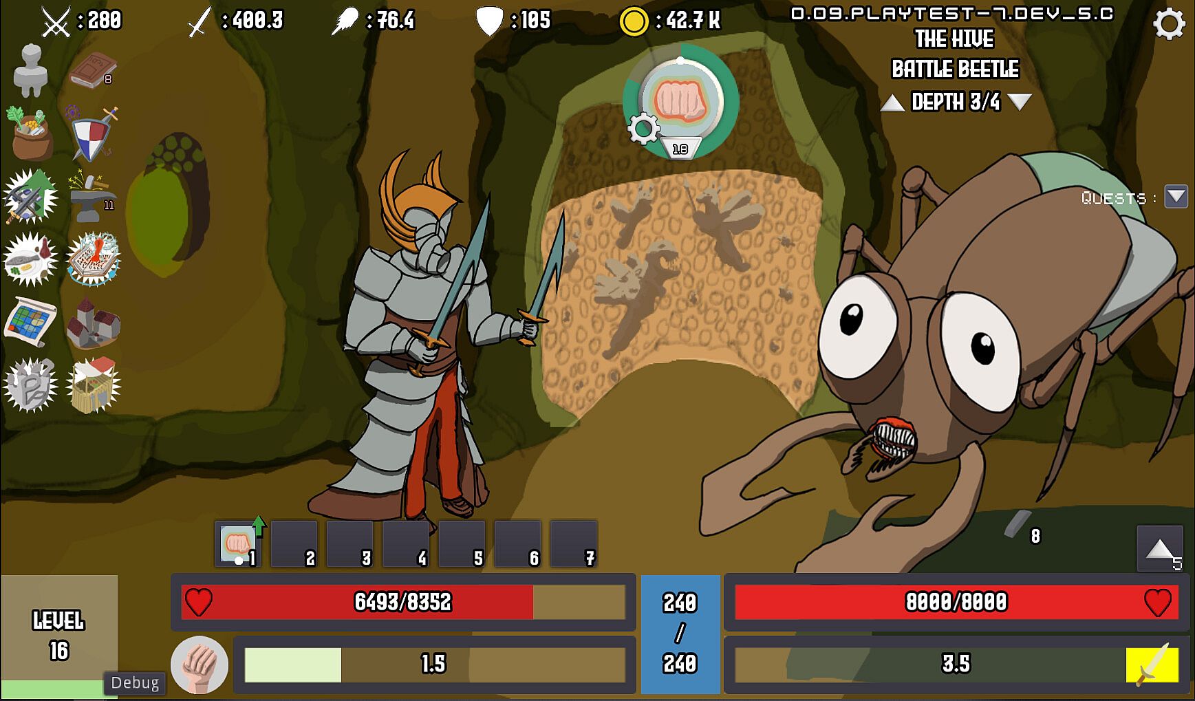 Progress Game is a 2D UI-based idle game with animations and particle effects, in which you slay monsters, farm ressources, create and upgrade your equipment.