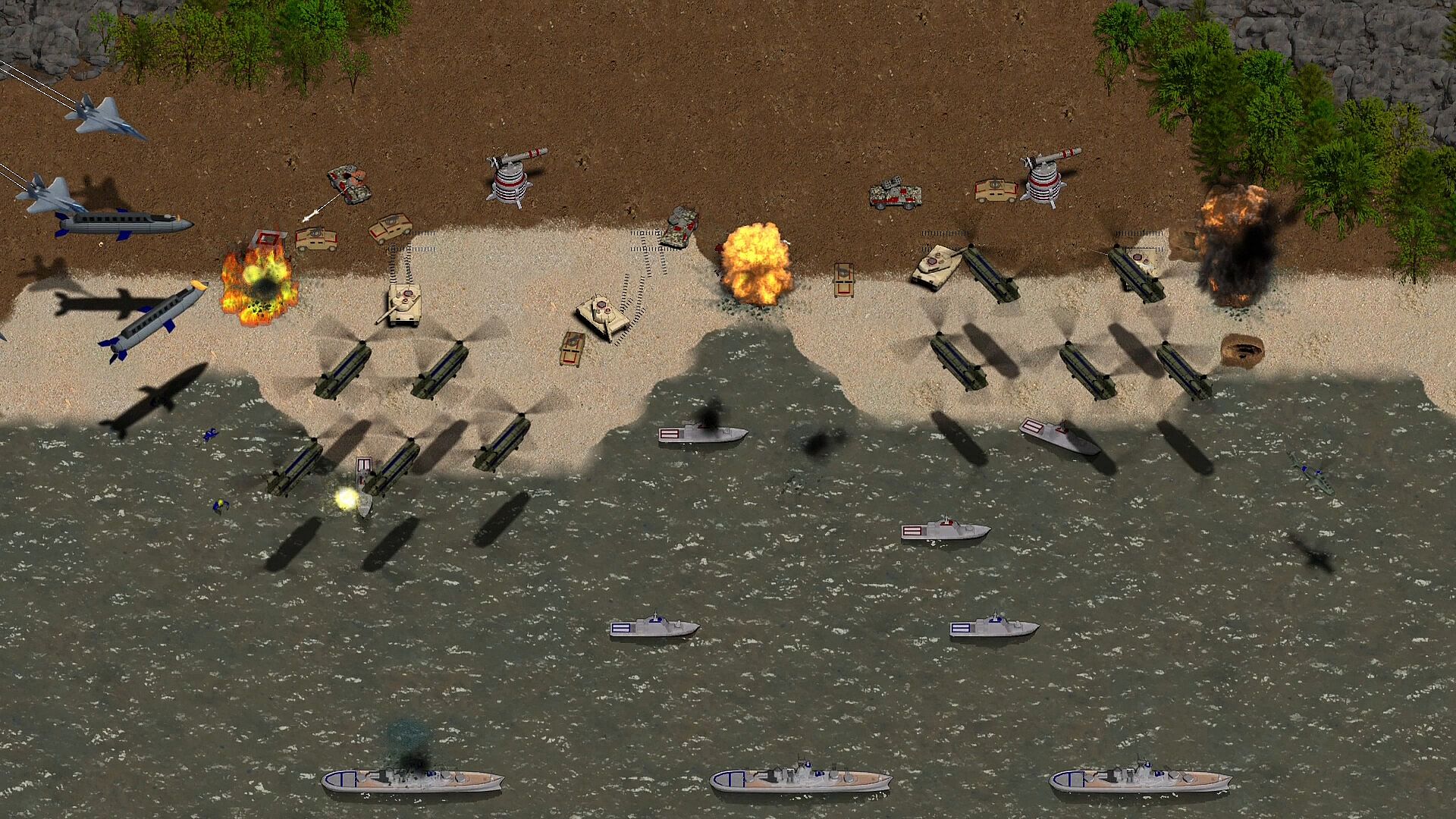 Customization plays a significant role, allowing you to tailor your forces to match different approaches. Options include flooding the field with large groups of infantry for overwhelming numbers, constructing heavily armored tanks capable of crushing opposing vehicles, or relying on precise airstrikes to weaken defenses from afar. Superweapons add another layer, such as deploying battleships to bombard enemy positions directly. The core loop revolves around adapting to the battlefield's demands, balancing production, and leveraging these tools to outmaneuver opponents.