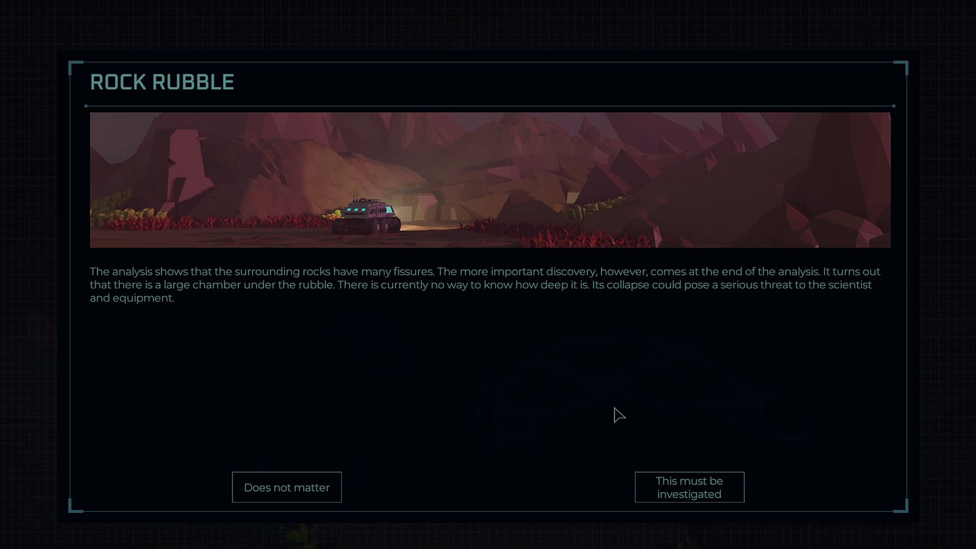 Without the right infrastructure, the expedition will fail. You must decide how to allocate your precious resources and develop the main base. Remember, every choice has consequences. After all, without energy, new discoveries, or the minerals hidden in foreign soil, the entire mission could end in failure.