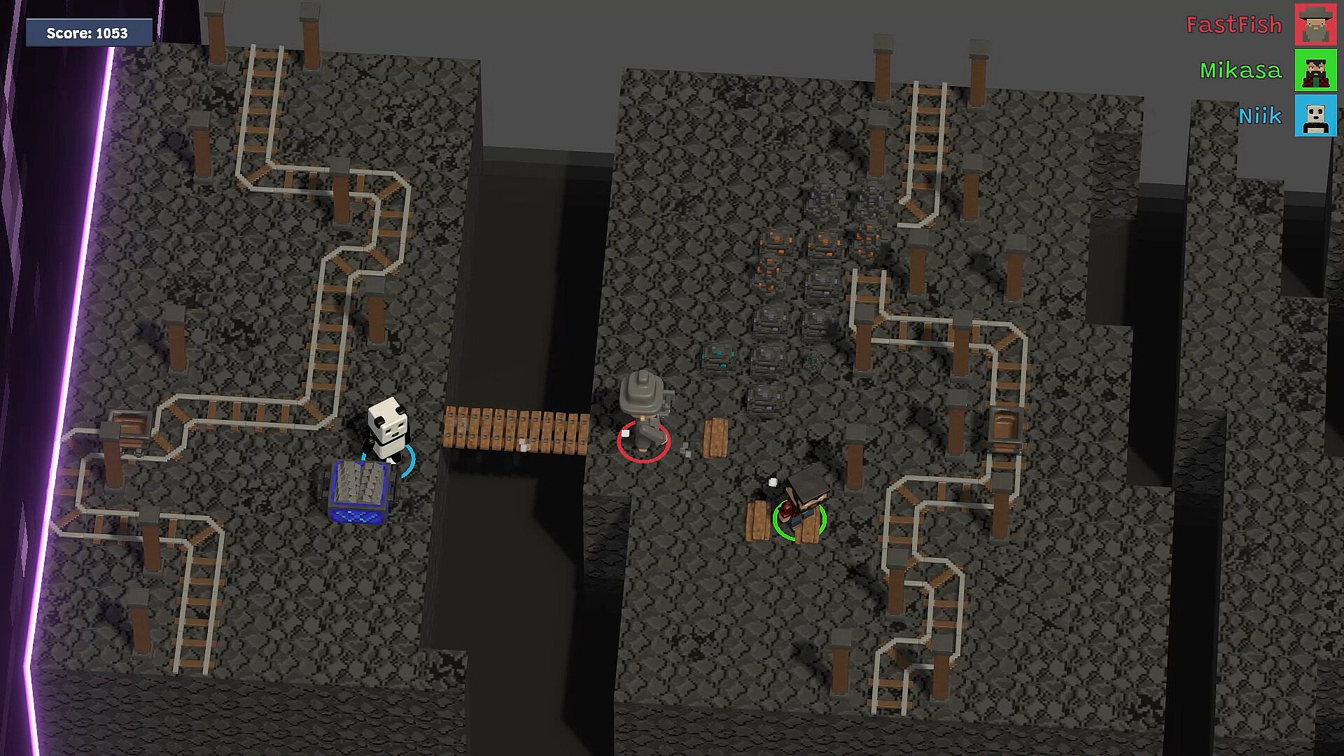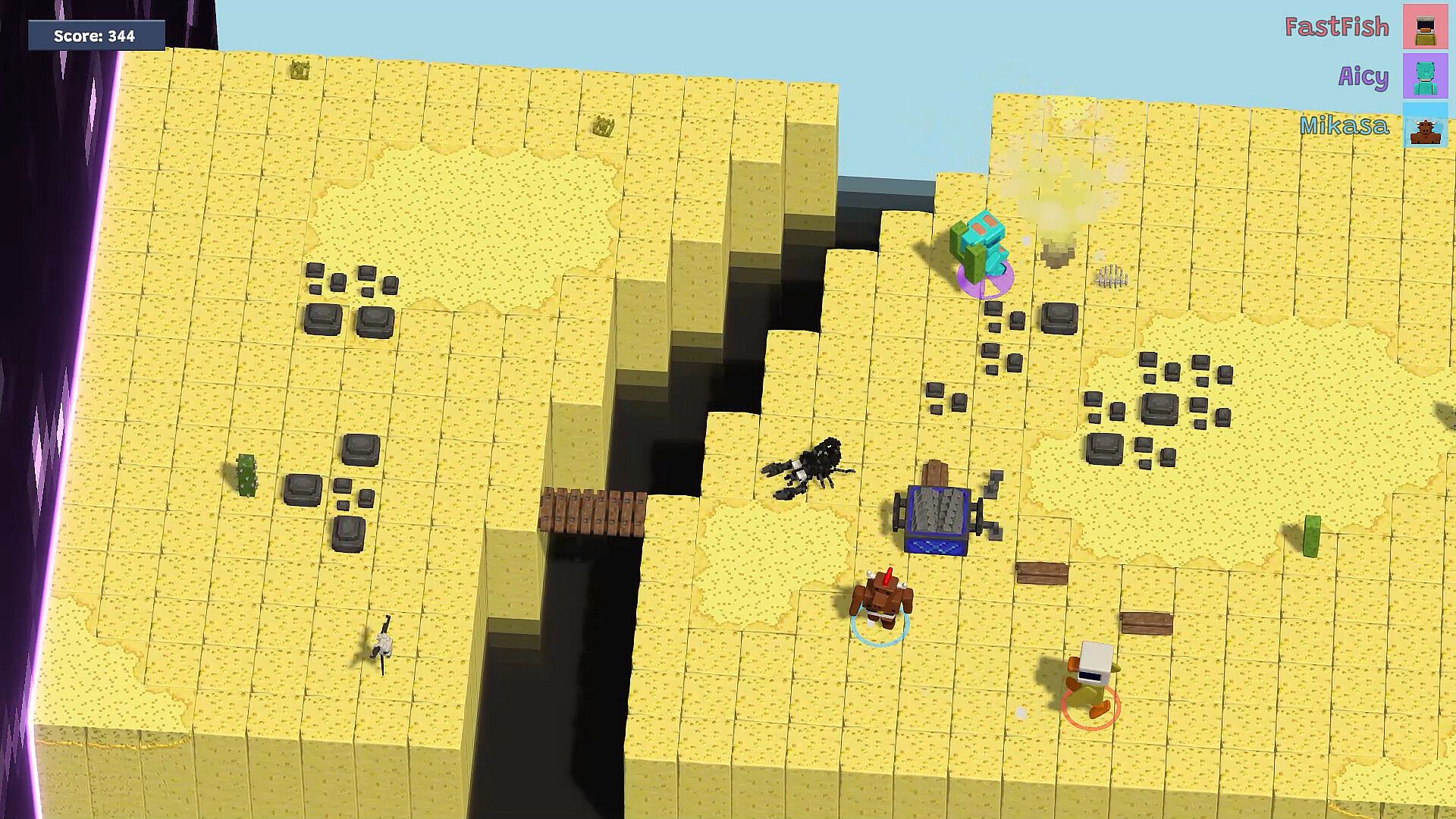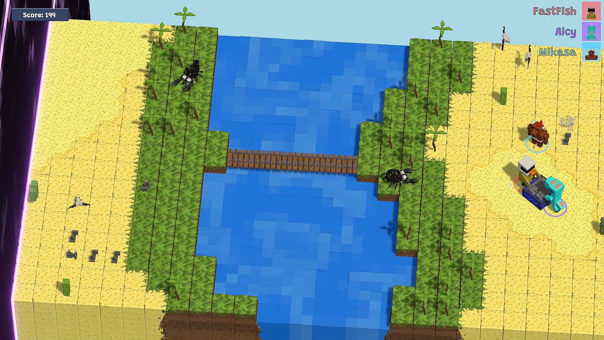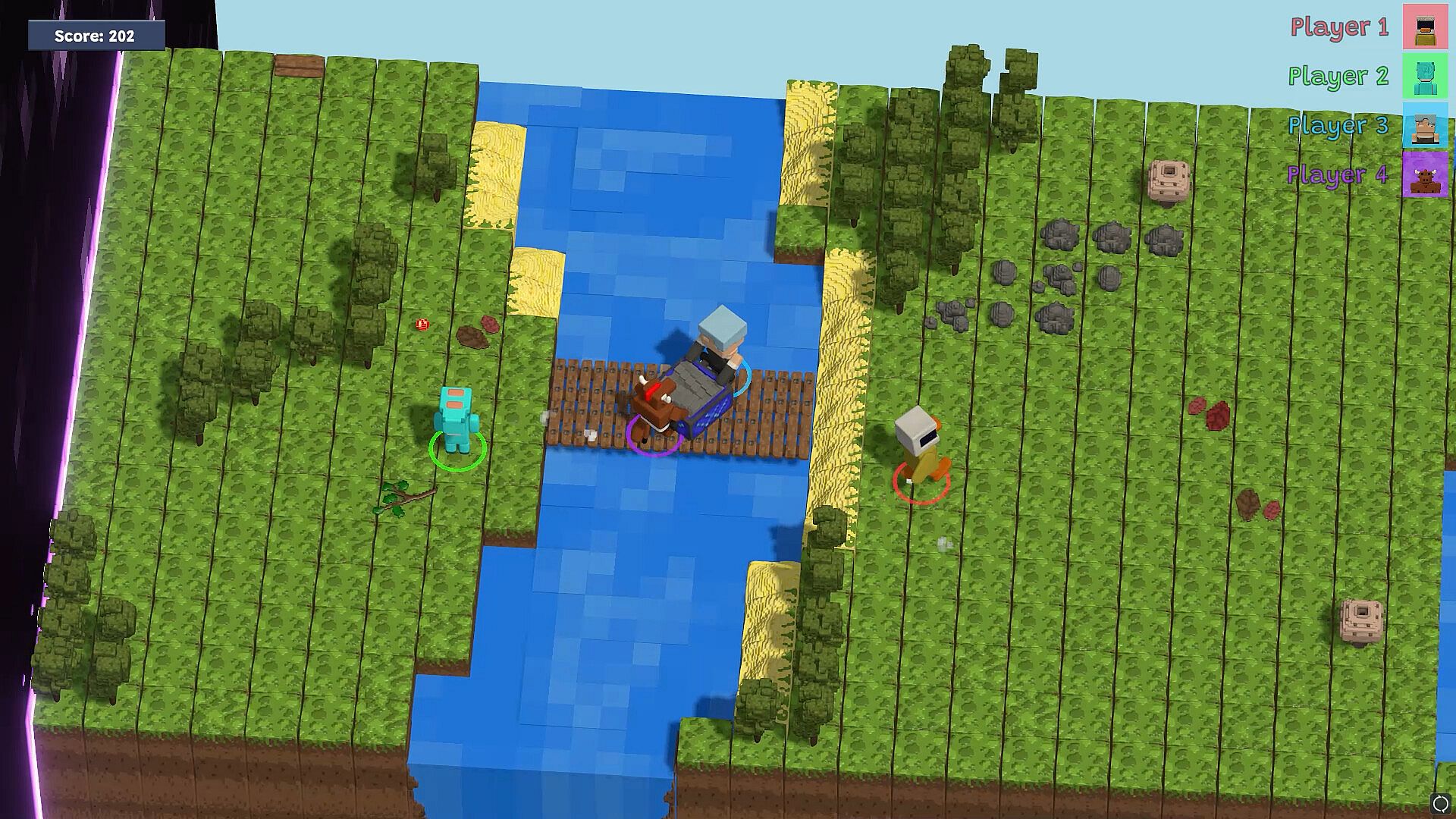 Cooperate with your team: gather resources, craft building materials, construct bridges over obstacles and avoiding all dangers along the way! Everybody has to do their part in this race with time in order to escape the void and reach the end of the level.ANIMALS TOGETHER STRONG!