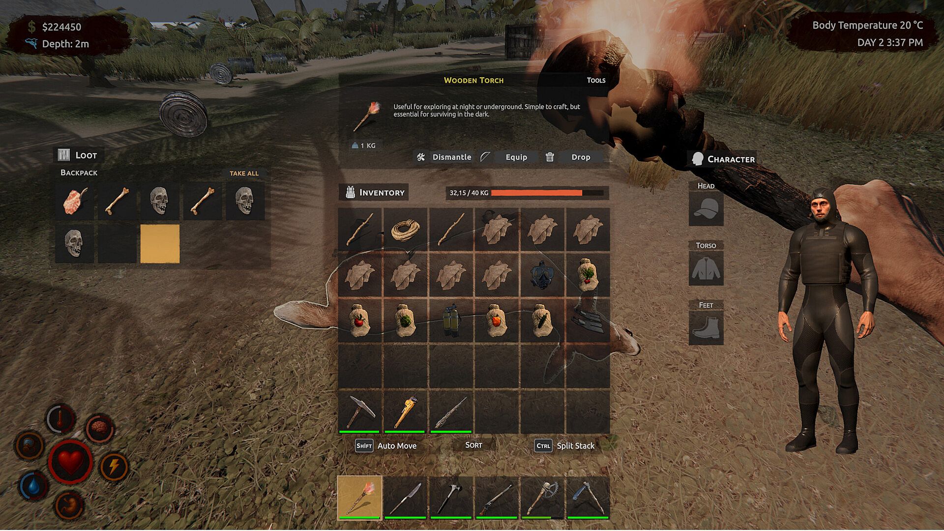✅ Deep survival systems (hunger, thirst, stamina, temperature, health).
