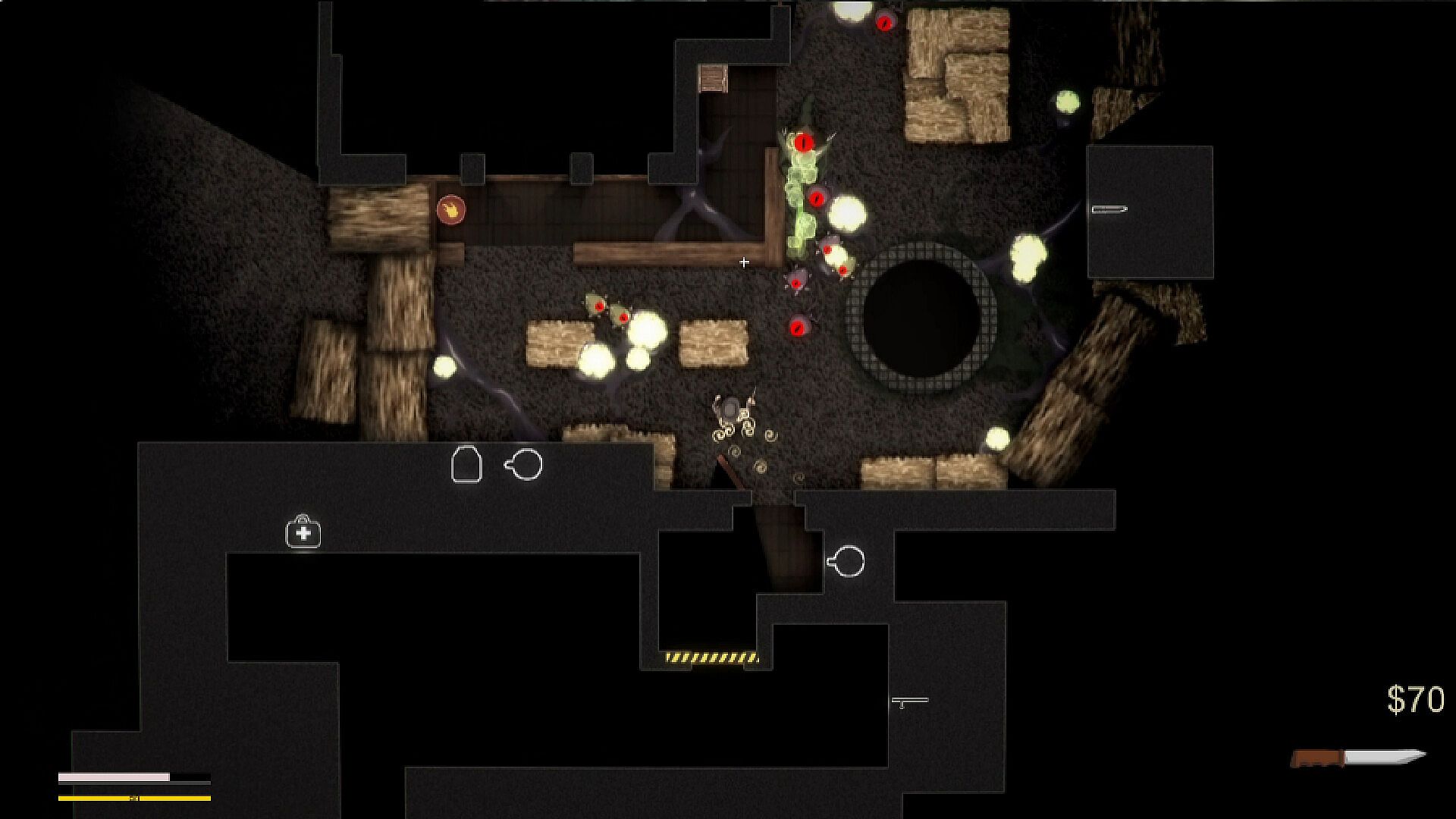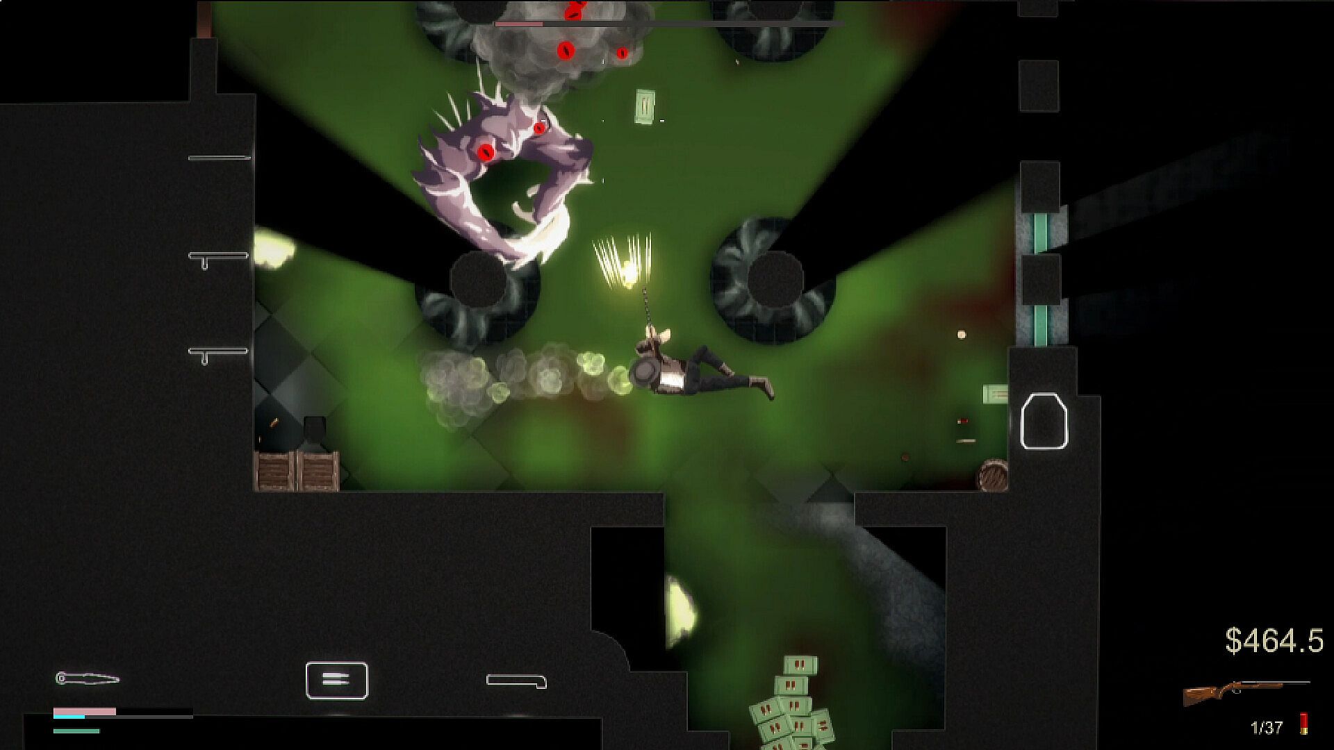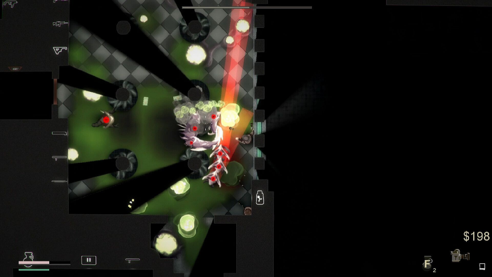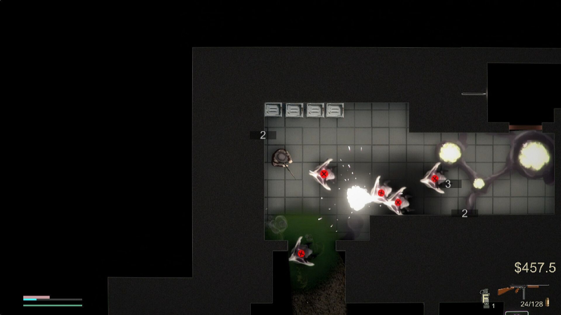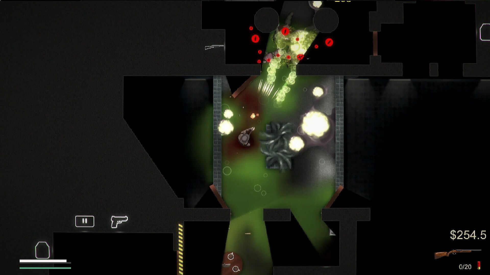 Action shooter in true top-down 2D perspective;