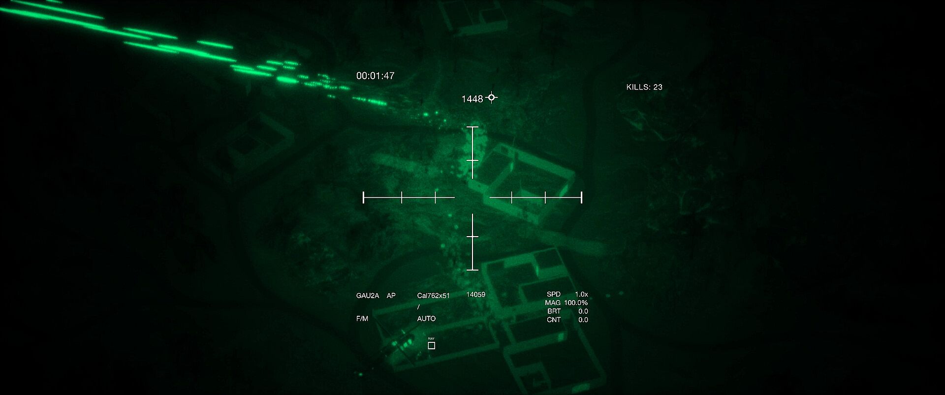 - Realistic depictions of AC-130 Variants, Weapons, and Munitions – Fly in the original AC-130A “Project Gunship” variant utilizing the 4x GAU-2/A 7.62mm miniguns and 4x M61 Vulcan 20mm cannons or the active AC-130J “Ghostrider” variant utilizing 1x ATK GAU-23/A 30mm Autocannon, 1x M102 105mm Howitzer, and multiple wing-mounted AGM-114 Hellfire missiles. Project Gunship allows the player to customize their experience to meet their expectations.