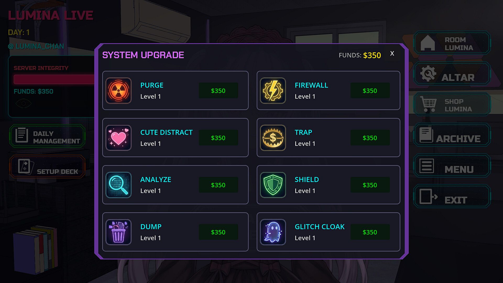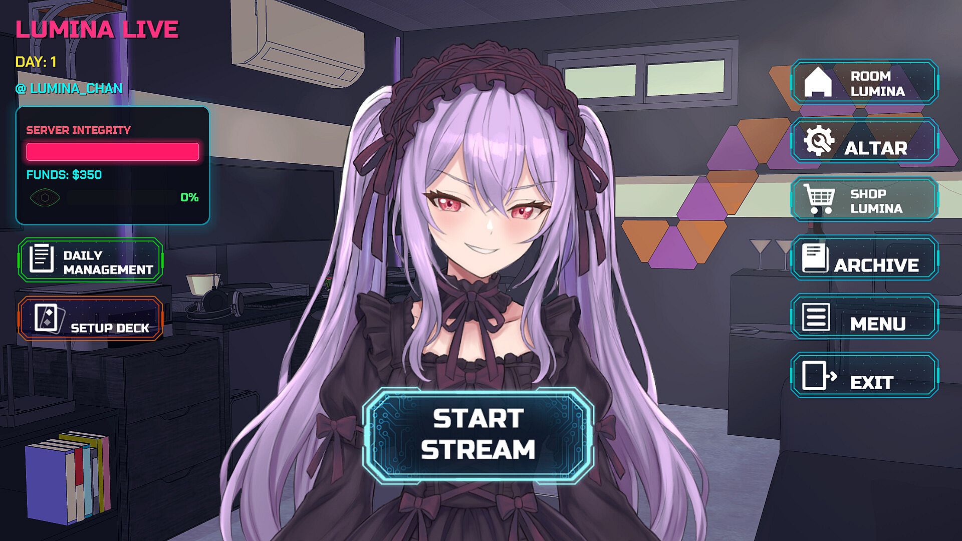 Play as Lumina, the Queen V-Tuber currently hyping up the network. On-camera, her image is a bright, innocent, cutesy idol... But let me tell you, all of that is total "Cap" (BS)!
