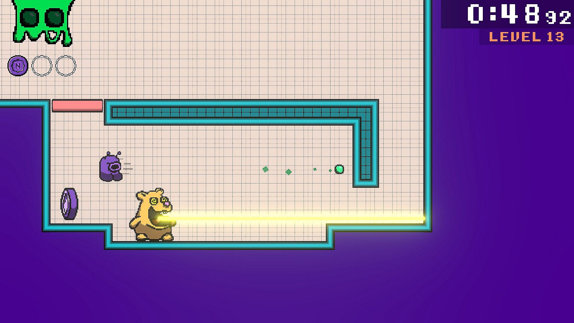 Project Nasu is a 2D action and puzzle platformer where you play as a lab experiment trying to escape an evil scientist’s laboratory. Play as Nasu, using his snout to fire projectiles that propel you backward to evade, and fend off threats. Solve puzzles by activating platforms and deactivating lasers to ultimately escape the facility and save Nasu.