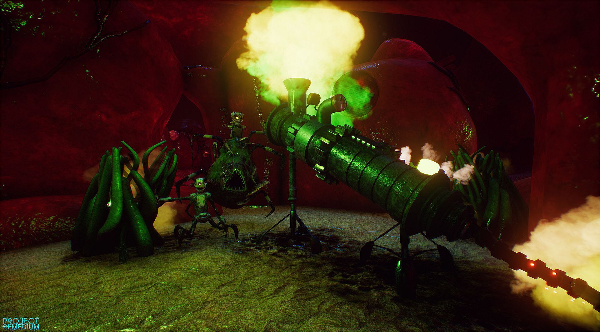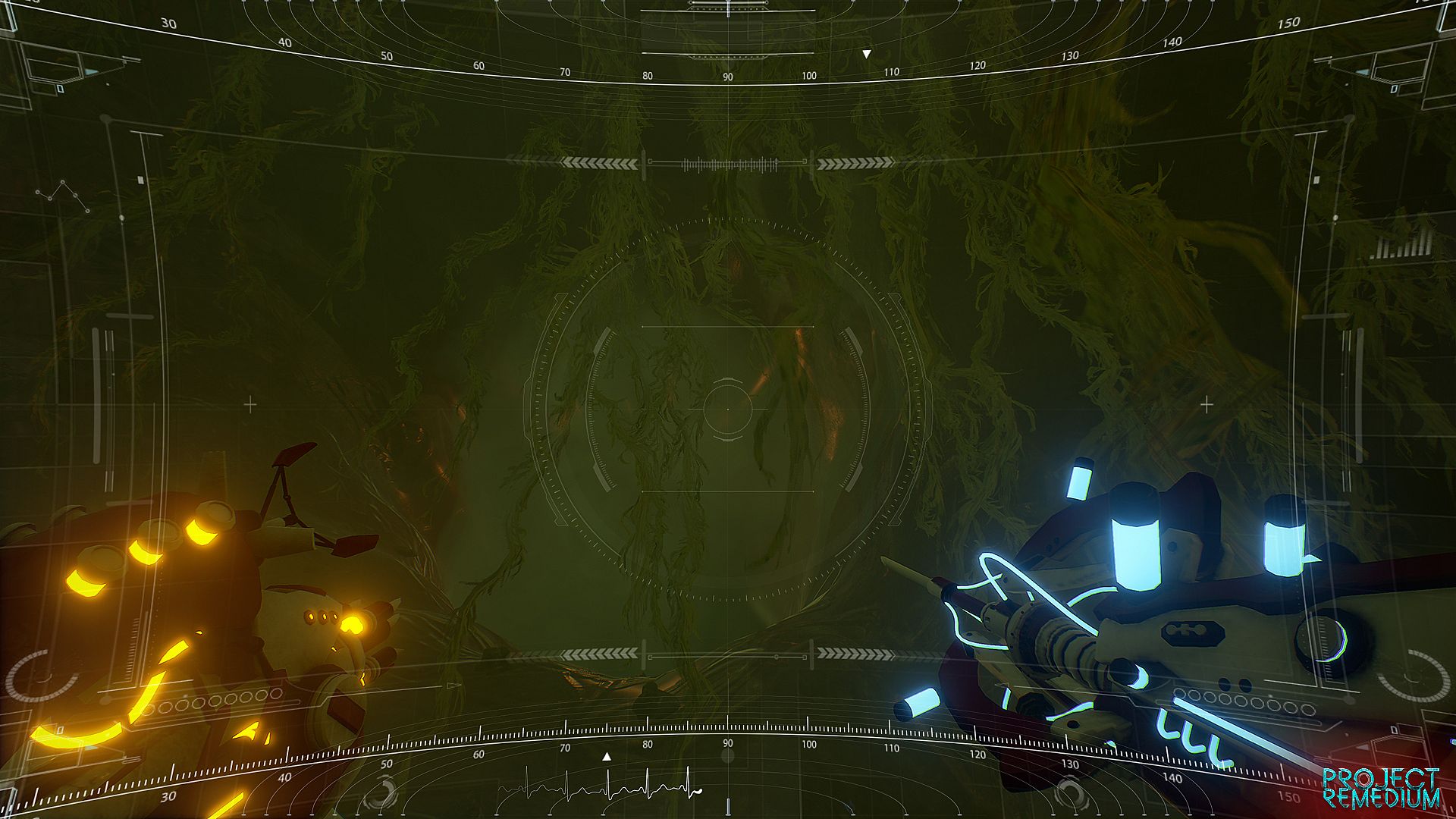 Armed with once purely medical equipment that now became a duo of adaptive weapons - the Energy Cannon and the Remedium Sprayer - and able to travel in a fast and agile way with help of an invaluable grapnel, Nano+ can fight pathogens, mutated organisms and deranged nanobots, heal, help his allies and interact with a unique environment.