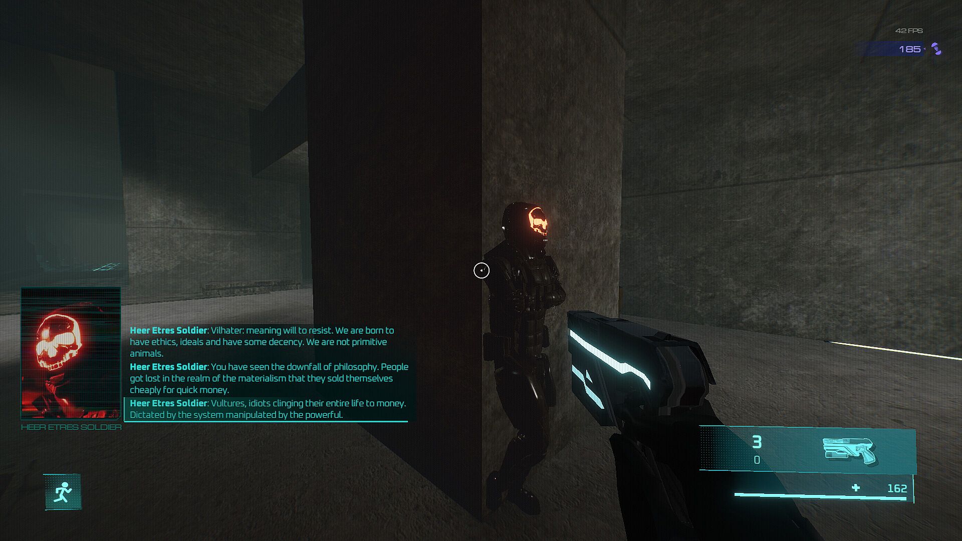 On his way, he encountered Heer Etres Vivants, a terrorist organization who attacked the lab complex with the aim to preserve the sanctity of the carbon-based lifeform in the empire and rejects the rise of Ionis as the inevitable future master race.