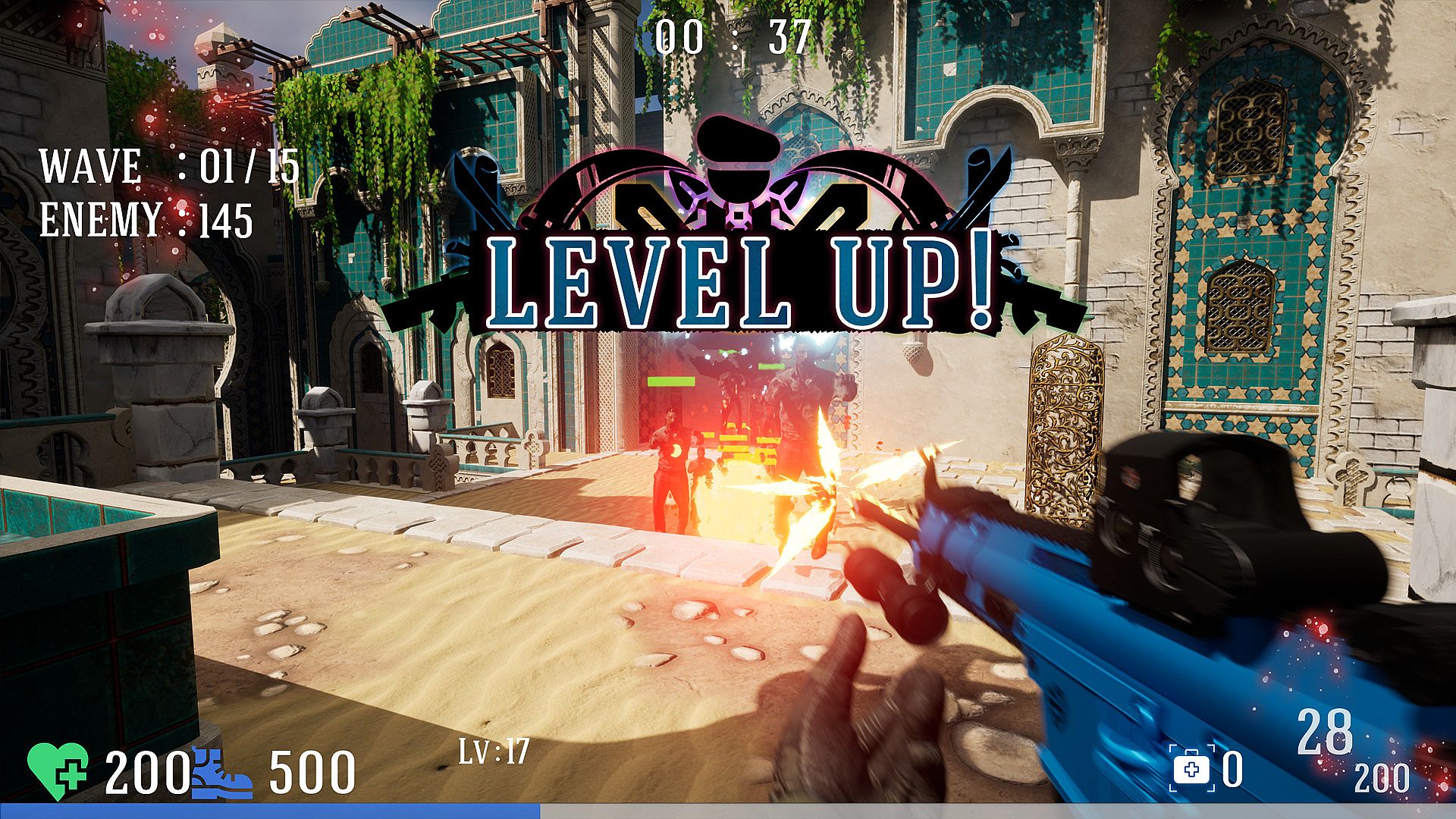 Level up and master skills to crush waves of zombies in this level-based wave shooter blending FPS and RPG elements. Defeat enemies to earn experience and skill points, then spend them on 27 abilities like boosted attack power, larger magazines, or defense boosts. Waves intensify with stronger zombies and new foes; fail to clear one, and the next spawns permanently tougher, demanding precise kills. Explore fields dotted with buildings like shopping malls, urban zones, mountain forests, and palaces to grab ammo boxes, recovery items, and experience crystals amid combat. Pick weapons with varied stats-some amp attack, others defense-to match your style, hunting the ultimate one hidden after bosses. Action fans who crave skill-building and survival tension will thrive here.