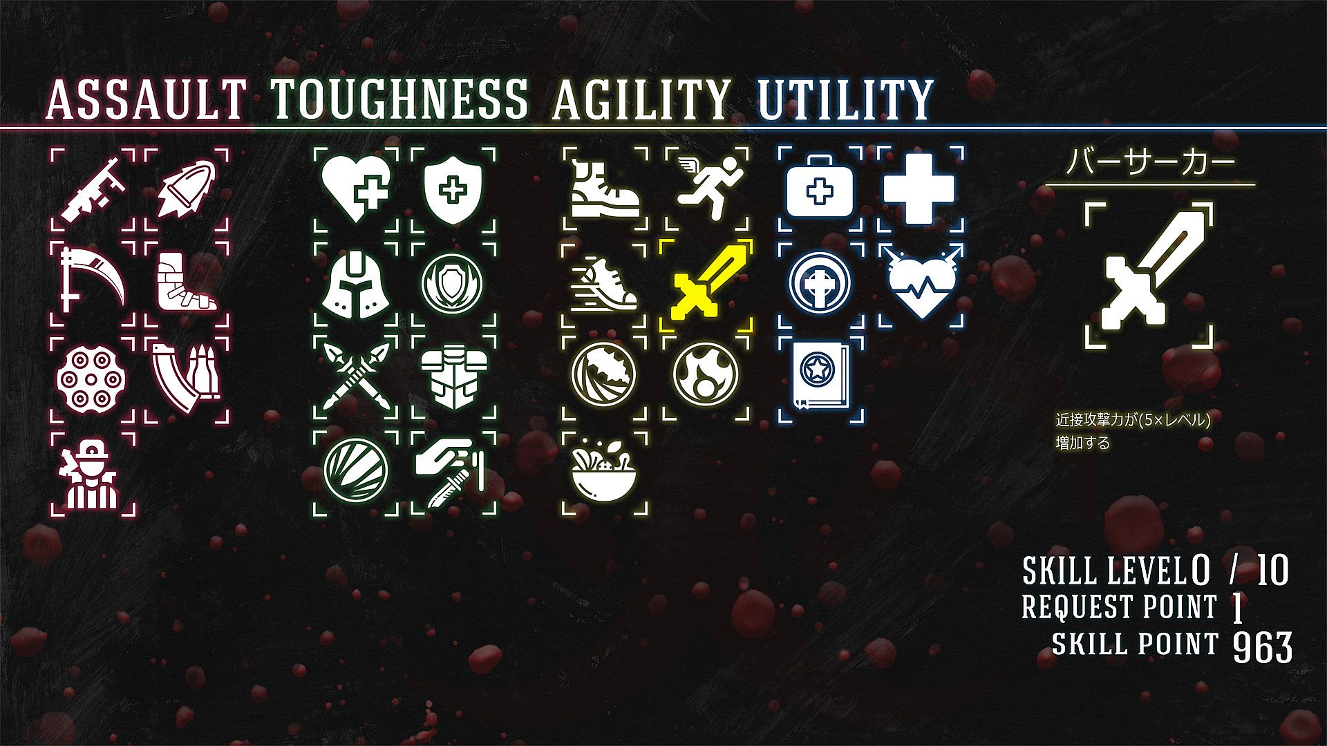 27 different skills await you, including increased attack power, increased magazine size, adding a certain amount of defense to attack power....