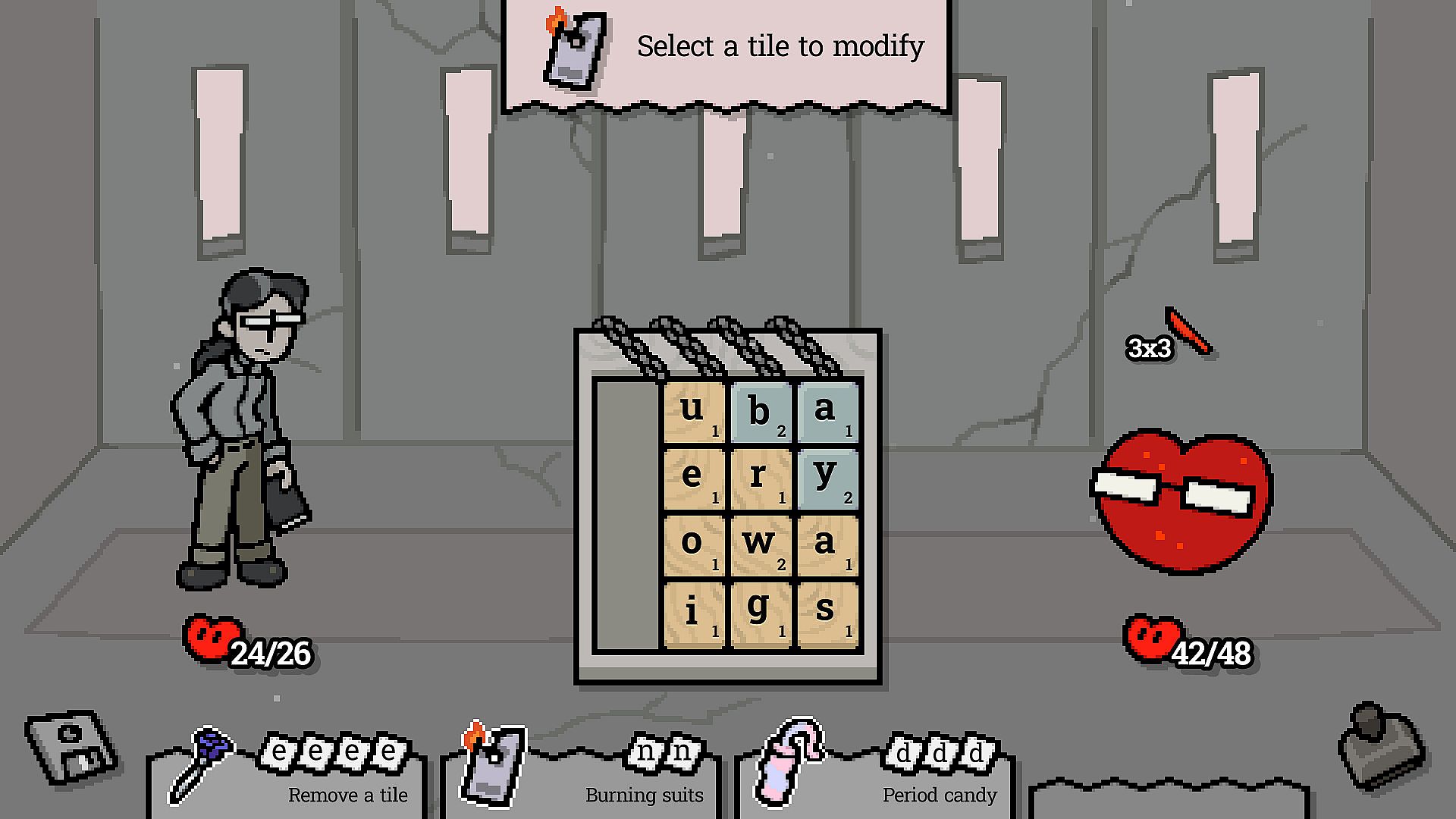 Battle a wide variety of enemies that each change the game. Manage tiles afflicted with effects such as poison, trigrams, and capital letters. Solve mystery letters through deduction, balance yaoi and yuri tiles, or spell words long enough to make an enemy heel!
