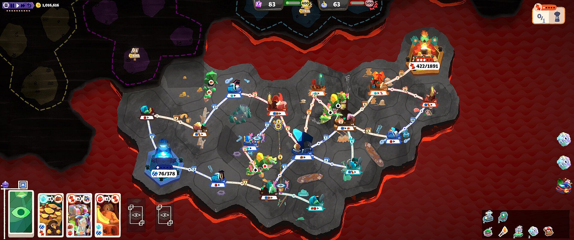 Grow by connection. Every incoming road upgrades a settlement, unlocking tougher choices and bigger payoffs.