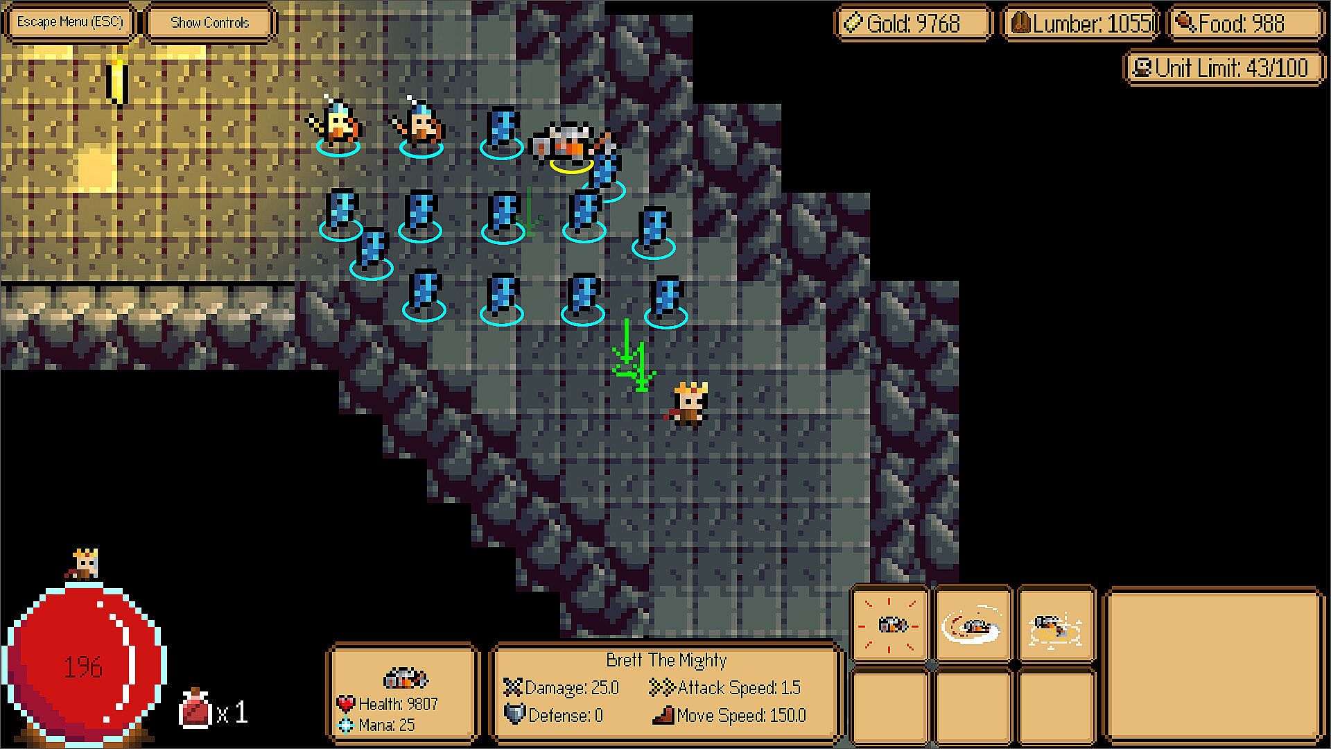 Get your workers to mine gold, chop trees for lumber and build structures for you.
