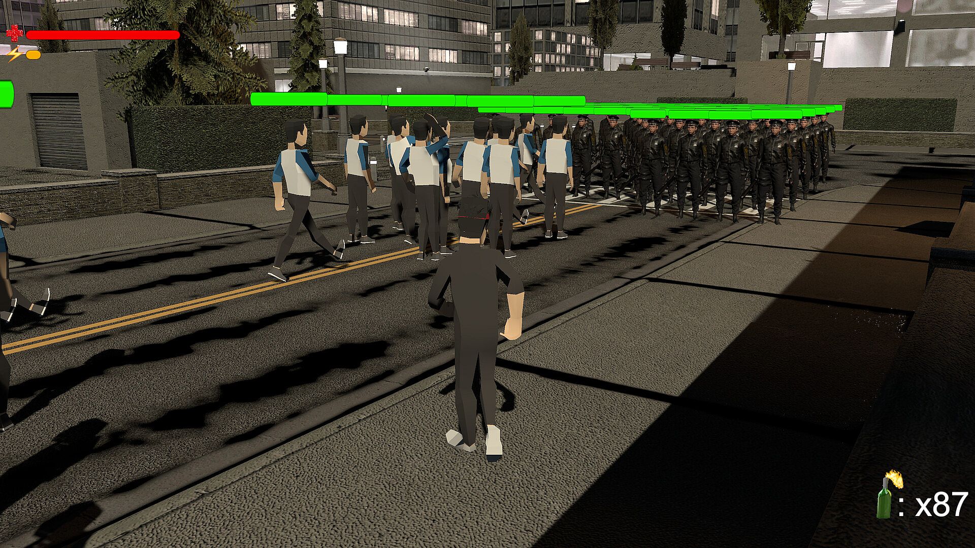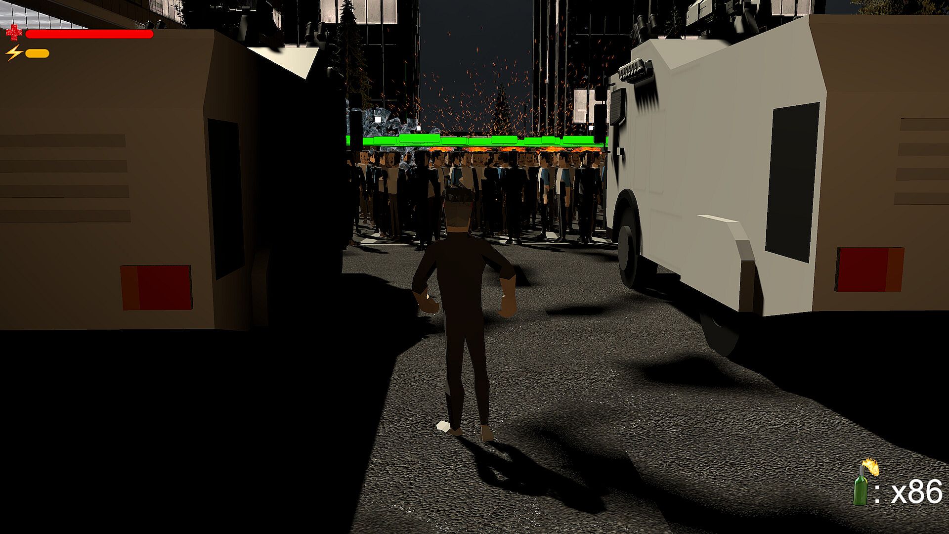In Protest Simulator, your only goal is to make your voice heard. Everything and everyone in the city wants to silence you. Police, riot trucks, barricades, tear gas... Do whatever it takes to shout one more slogan, throw one more molotov, take one more step.