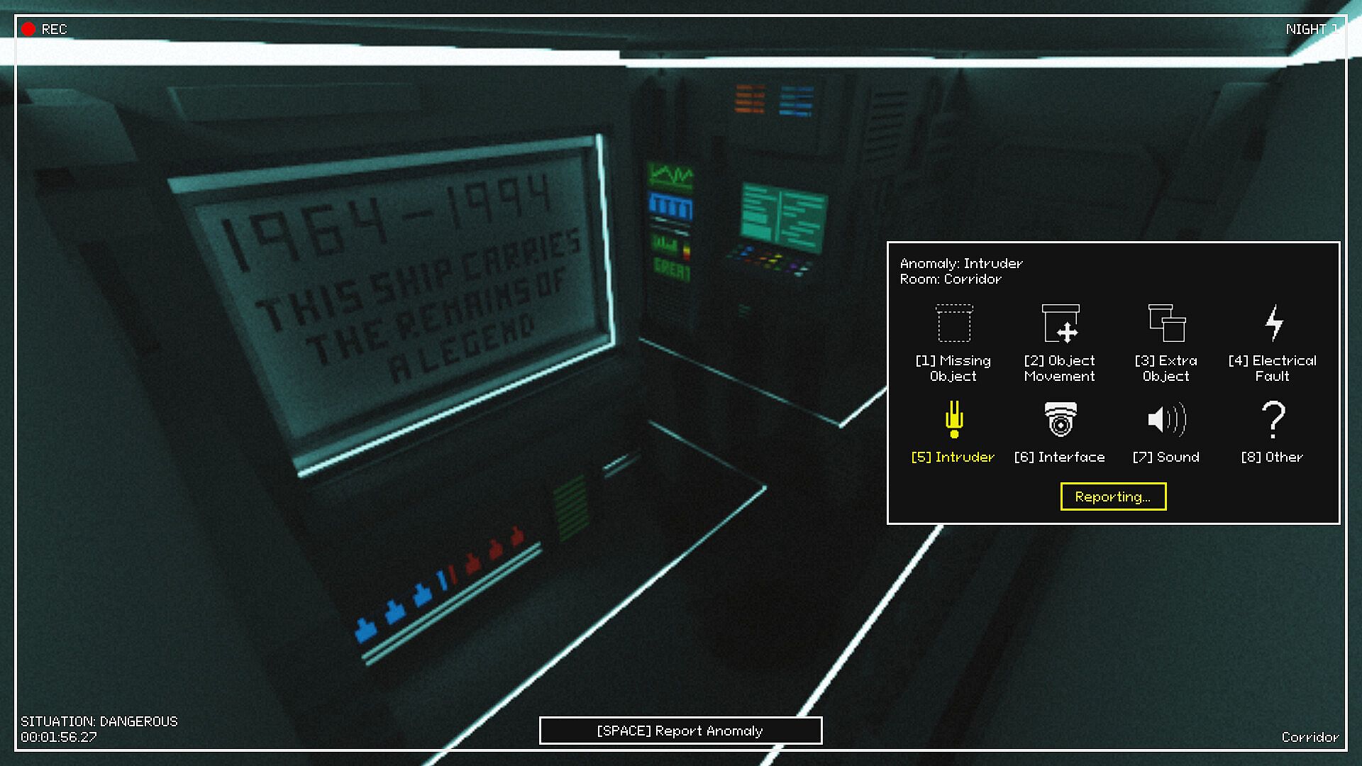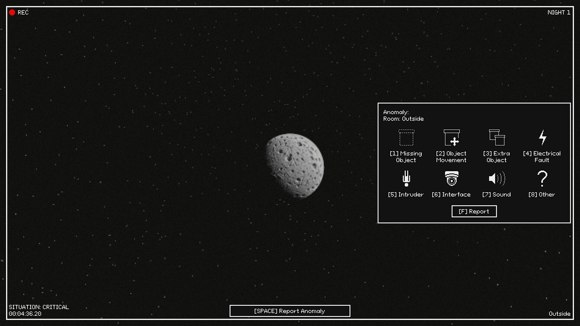 Protocol: Umbra is an observation and memory game in which the player must identify anomalies and unnatural alterations occurring within the ship, report them, and neutralize them while trying to survive through multiple nights that grow increasingly complex the longer the ship stays orbiting the celestial body.