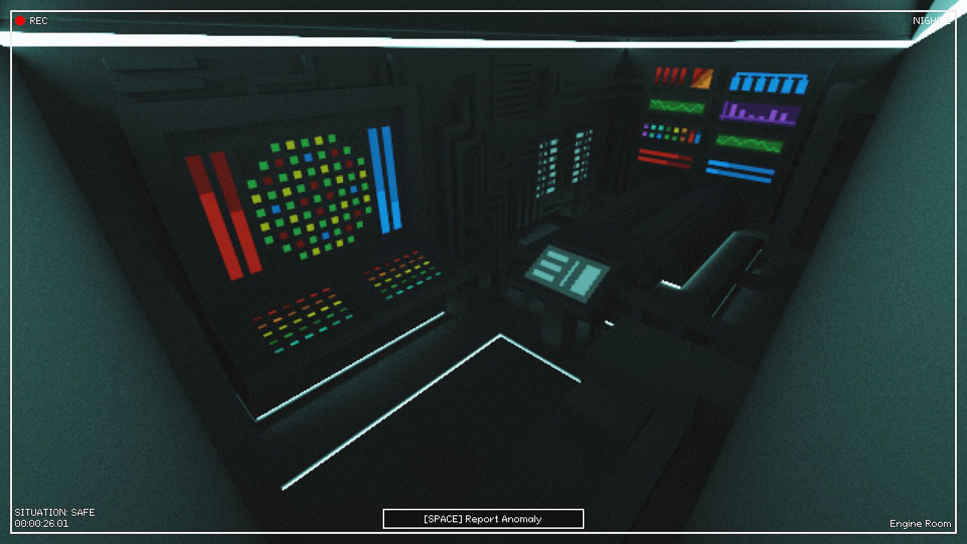 Using security cameras, your function is simple: protect, guard, and monitor every corner of the ship. Nothing can go unnoticed. You are alone on this mission, relying only on your memory and circuits to guide you.