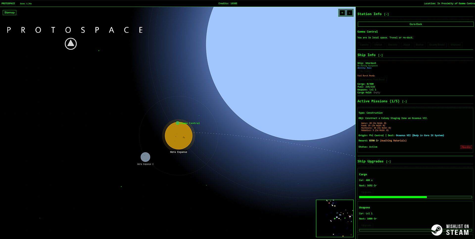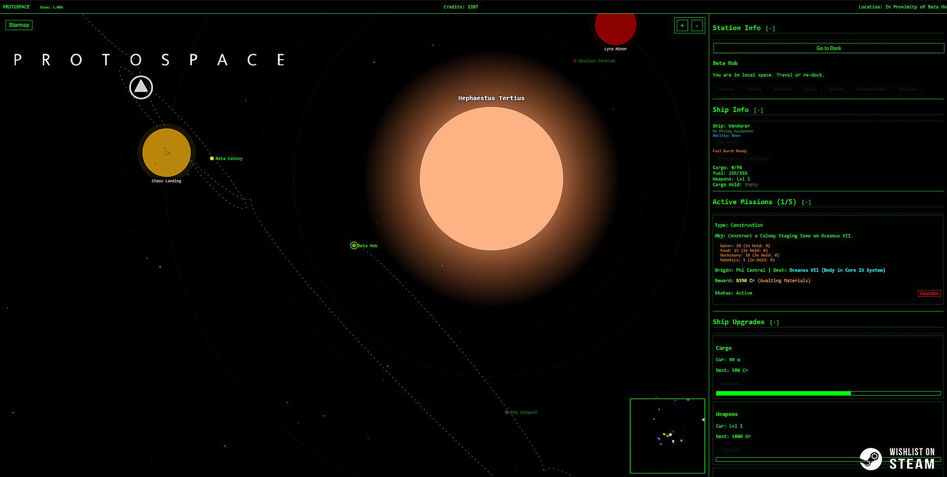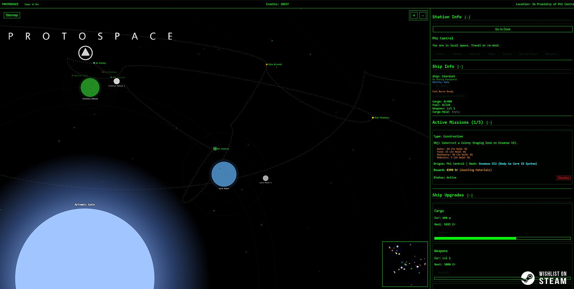 From the top-down tactical view of your lo-fi starmap terminal to your shipyard with a view of your current ship and upgrades, you'll navigate a massive, procedurally generated region of space. Every dot on the star chart is a destination, and every destination is a choice.