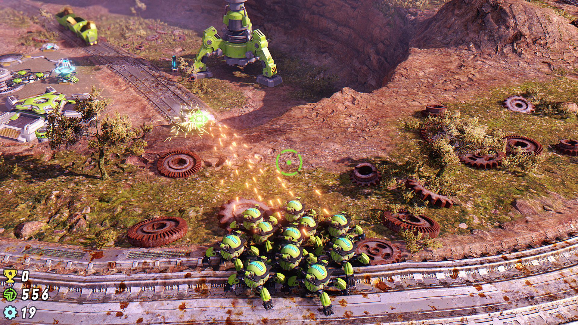 Mine for resources and use them to rapidly build up your army. Deploy various support structures along your way to aid you in your fight. Collect parts from wrecked units and use them against your opponents. Quickly change unit composition to adapt to the enemy's tactics and overwhelm them.